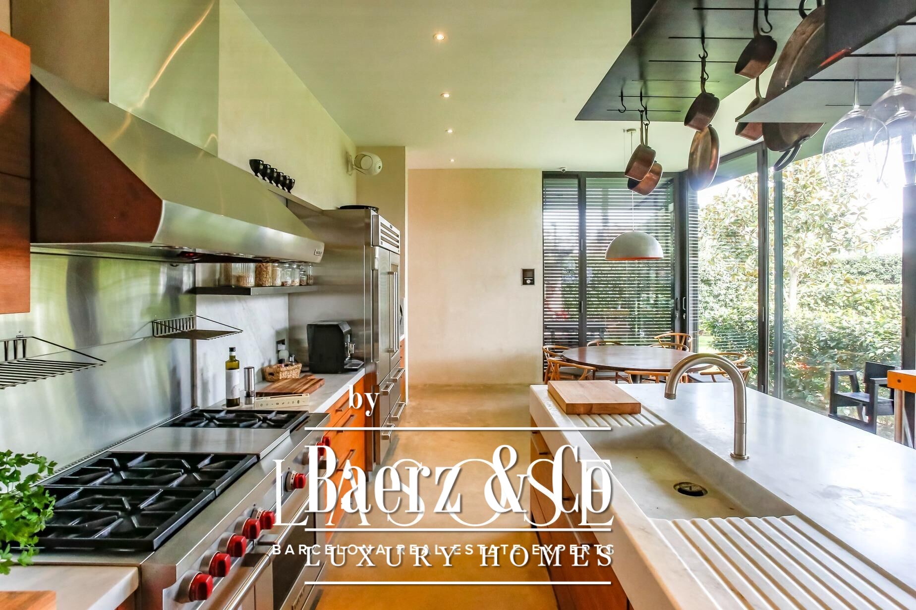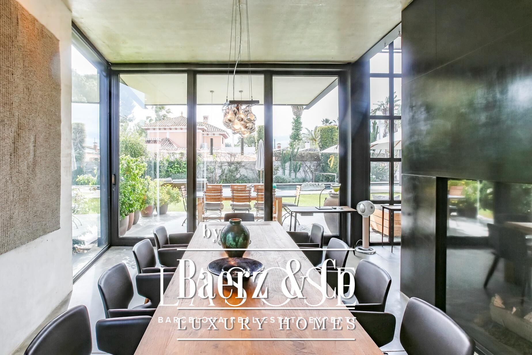 . LASOSE properties is delighted to present this masterpiece in the Mediterranean!. . Making their European debut on a 1,193 m2 private plot. Just a short stroll from the Mediterranean Sea in the laid-back town of Sitges, only 30 minutes from Barcelona. Kundig crafted this elemental masterpiece using concrete block, COR-TEN steel, and expansive glass panels. The property includes a vast underground studio that can comfortably accommodate 200 people or 10 cars.. . The main floor is framed by massive steel pivot doors, which rotate with the gentlest touch, connecting the interior to a private outdoor area, complete with a meticulously landscaped garden, lap pool, and a dedicated gym. Towering 7.7-meter-high ceilings and a dramatic glass wall flood the living and dining areas with natural light. The open, soaring space offers an ideal backdrop for any style of décor.. . The chef’s kitchen on the main floor is expansive, fully functional, and equipped with top-of-the-line Sub Zero and Wolf appliances. The centerpiece is an island topped with a single slab of laser-cut Italian marble, weighing a full ton. All floors are heated by 1.8 kilometers of underfloor
