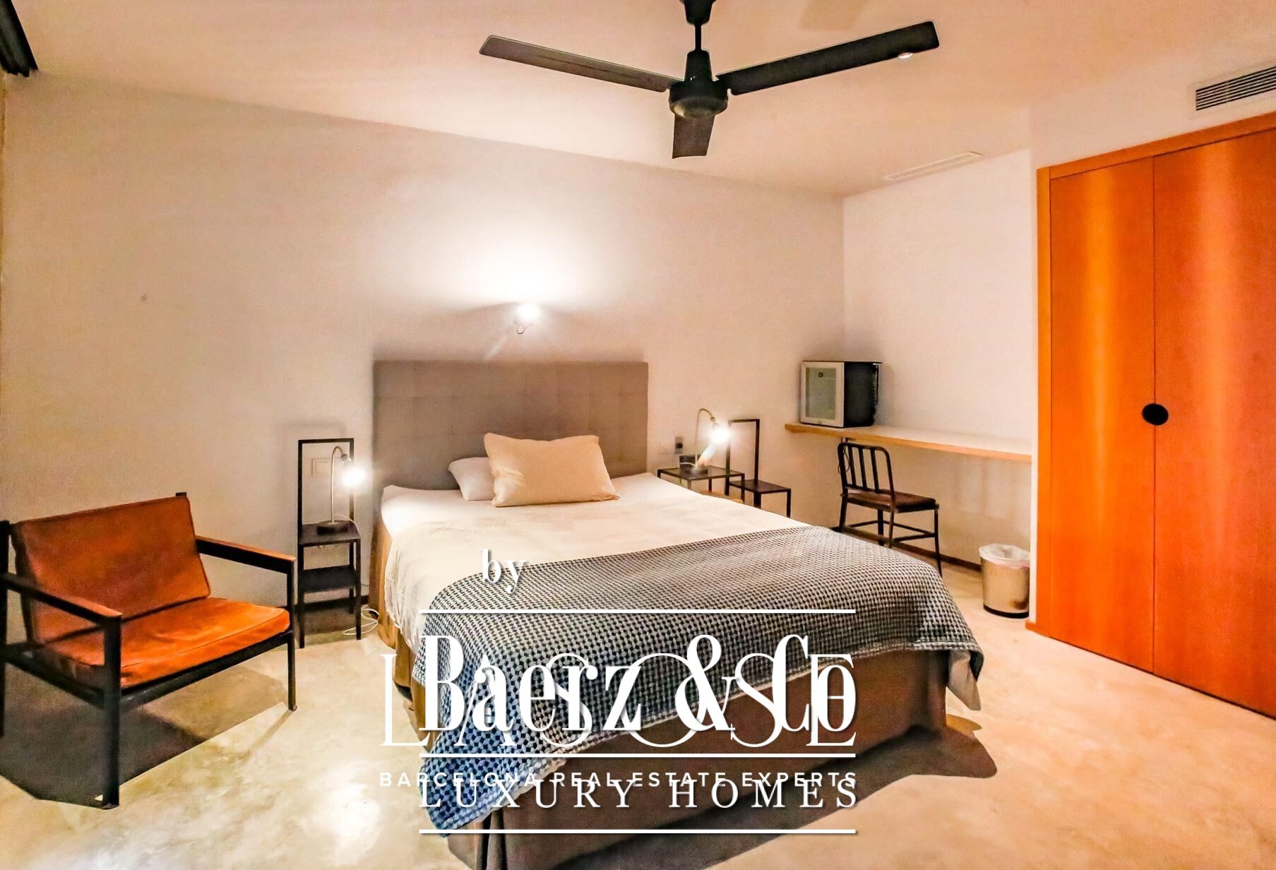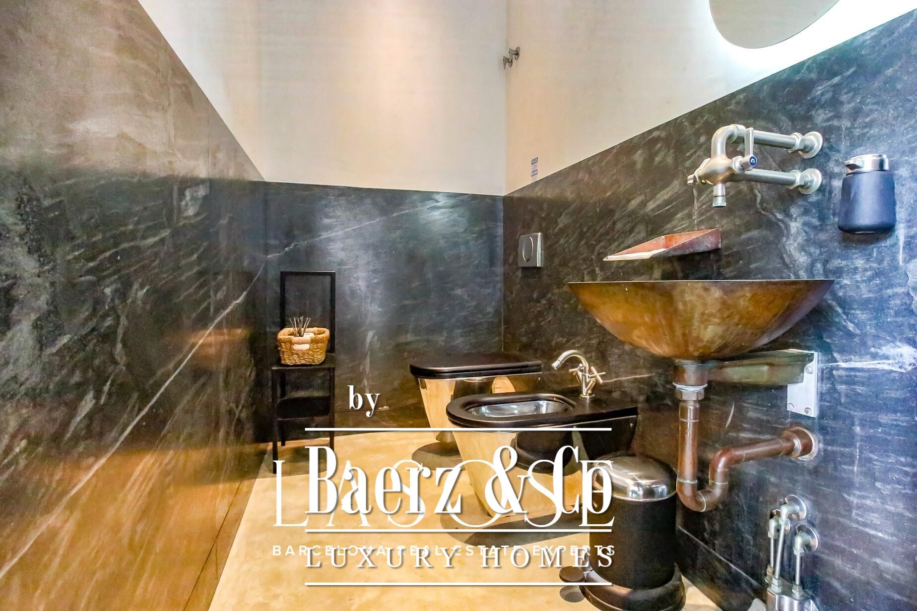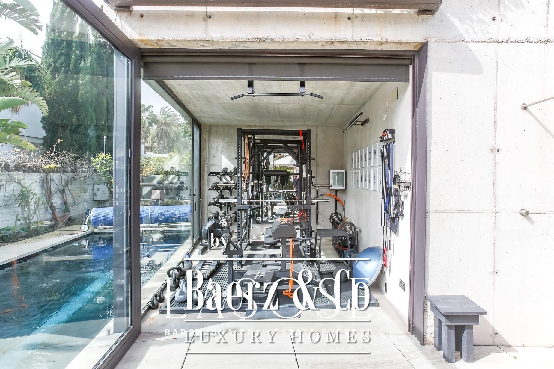 radiant heating tubes, ensuring comfort throughout.. . Upstairs, an interior bridge links four bedrooms, each with an en suite bath, all adorned with Italian marble cut to precise specifications. The master suite extends over an outdoor terrace, while a guest suite opens to a private roof garden, overlooking the lush garden and lap pool. From here, take the glass elevator to a secluded atelier with panoramic sea views or descend to the monumental underground studio, which holds the distinction of being the largest excavation for a private residence in Spain.. . Beneath the surface, this concrete and steel sanctuary boasts heated floors, an adjoining spa, wine cellar, tasting room, and even a tantric temple. A viewing platform with a full kitchen and lounge floats above the studio space, while a separate guest apartment with its own kitchen and bath ensures privacy.. . State-of-the-art 4K security cameras and a fingerprint access system provide ultimate security, ensuring peace of mind. Studio Sitges stands as a home, museum, and creative haven — a handcrafted tribute to the vision of one of the most innovative modern architects of our time.