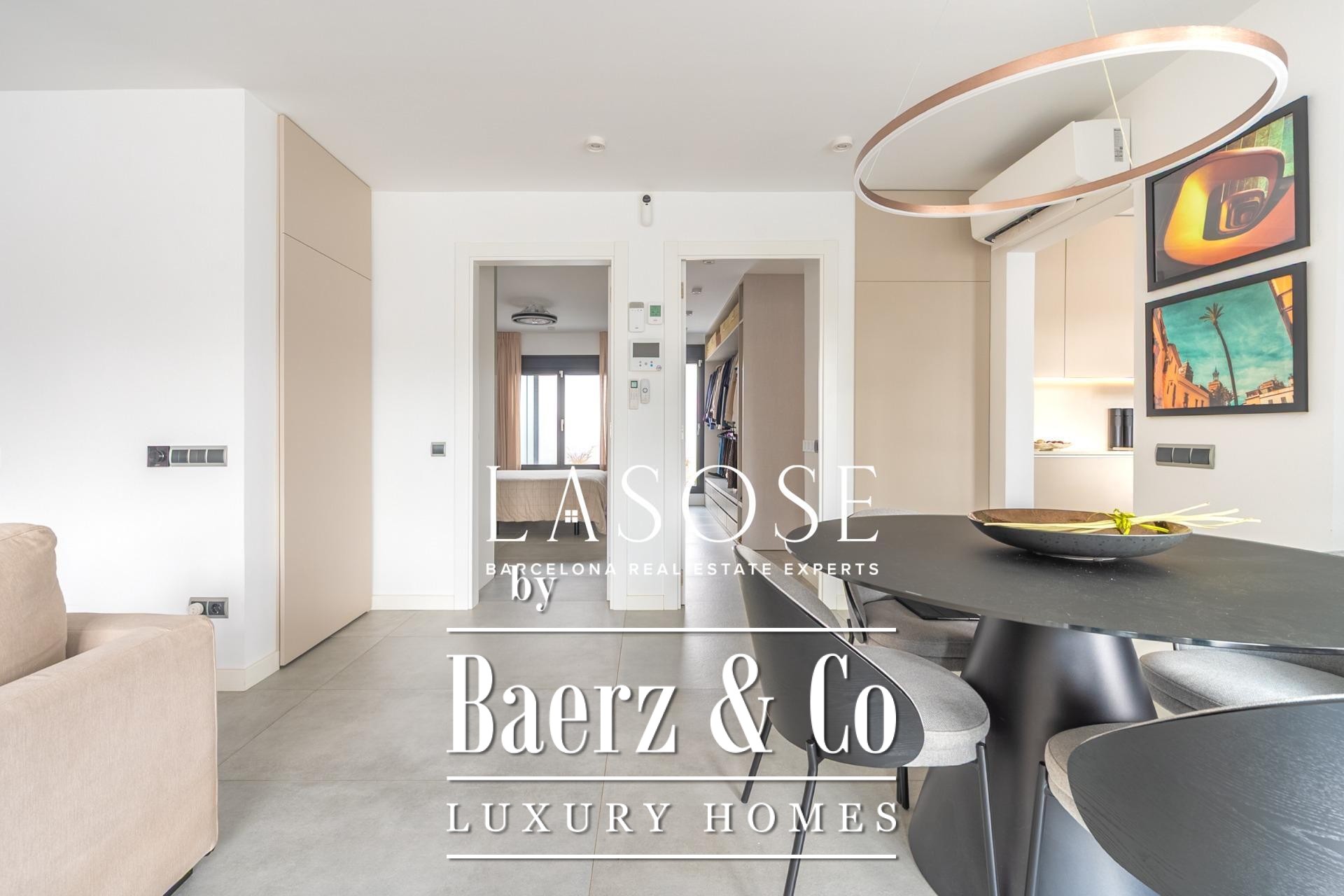 De moderne keuken, uitgerust met hoogwaardige materialen en apparatuur, vormt het kloppend hart van het huis en staat in directe verbinding met een uitnodigend overdekt terras voor moeiteloos buiten dineren. De hoofd slaapkamer beschikt over een designbadkamer en een ruime inloopkast, terwijl de tweede slaapkamer direct toegang biedt tot een volledige badkamer—met optimaal comfort en elegante privacy. Het hele jaar door is er klimaatbeheersing dankzij warmtepompen voor zowel verwarming als koeling in iedere ruimte; dubbele beglazing en verstelbare zonwering bevorderen thermische en akoestische isolatie. Alle details, van verlichting tot afwerking, tonen ingetogen tijdloze klasse.