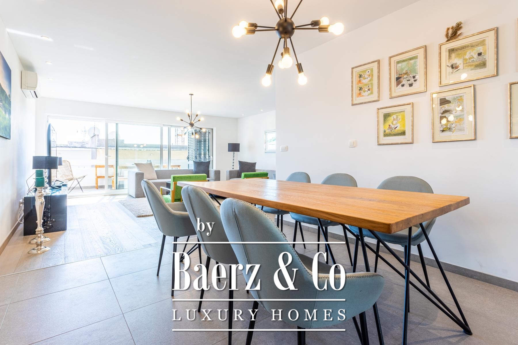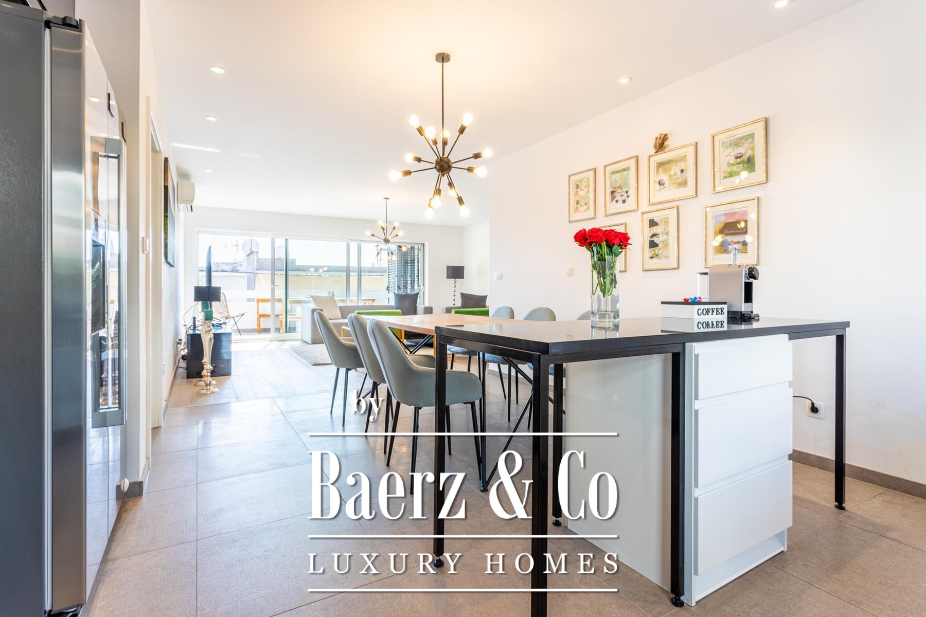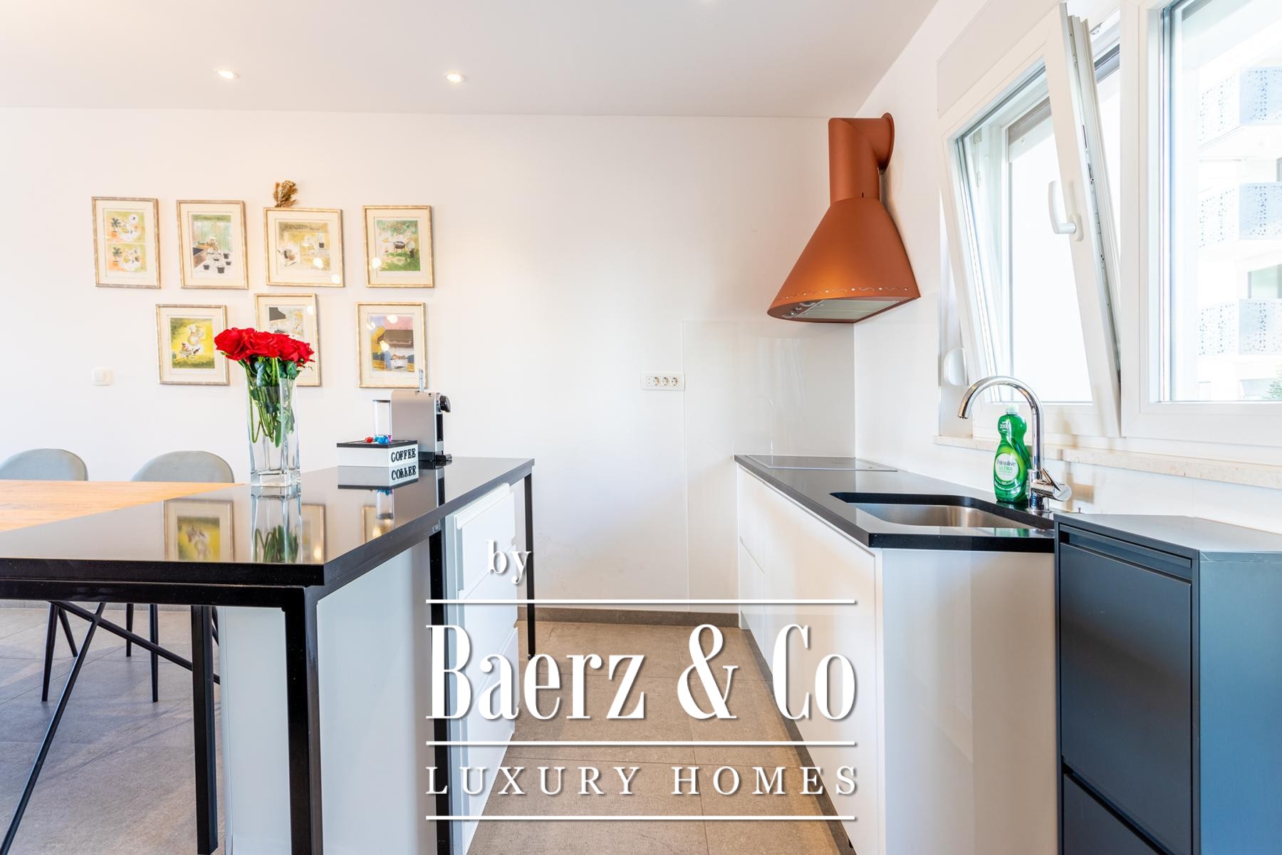Het volledig gerenoveerde en met verfijning ingerichte interieur valt op door ingetogen kwaliteit en doordacht design. Ruime balkons en terrassen, samen goed voor 50 m² aan de oost- en zuidzijde, laten overvloedig daglicht binnen en bieden gedeeltelijk zeezicht. De open living integreert keuken (voorzien van Miele- en Bosch-apparatuur), eet- en loungegedeelte naadloos, allen met directe toegang tot het terras voor soepel binnen-buitenleven.