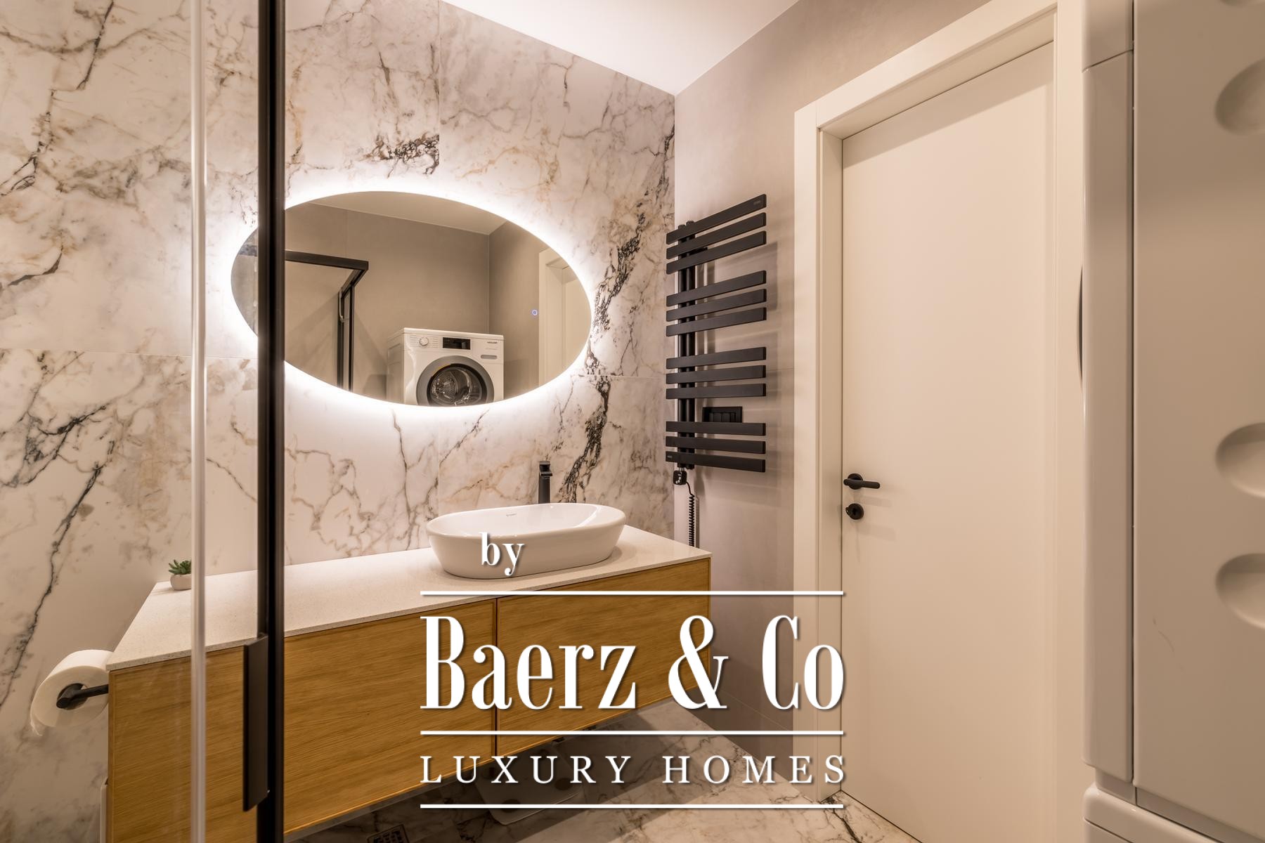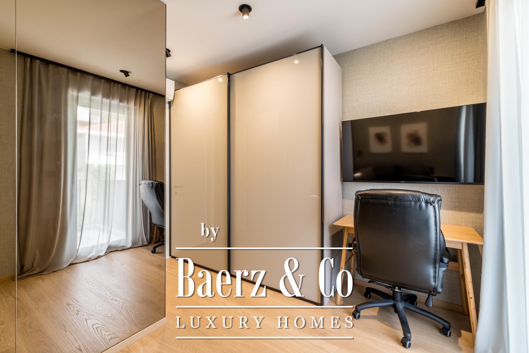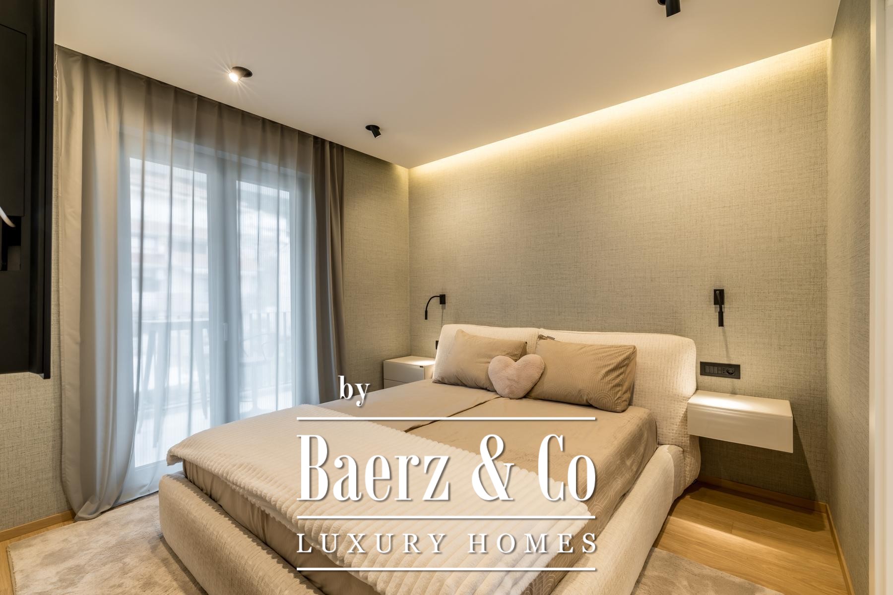 Het interieur wordt gekenmerkt door een open leefruimte waarin keuken, eetgedeelte en zithoek naadloos samenkomen onder ruim zuidelijk licht. De op maat gemaakte keuken is uitgerust met Miele- en Bora-apparatuur, een kookeiland, geïntegreerd waterfilter en ingebouwd afvalverwijderingssysteem. De doordachte plattegrond omvat een entreehal, gastentoilet, slaapkamer met toegang tot het balkon en een master suite met privébadkamer en inloopkast.