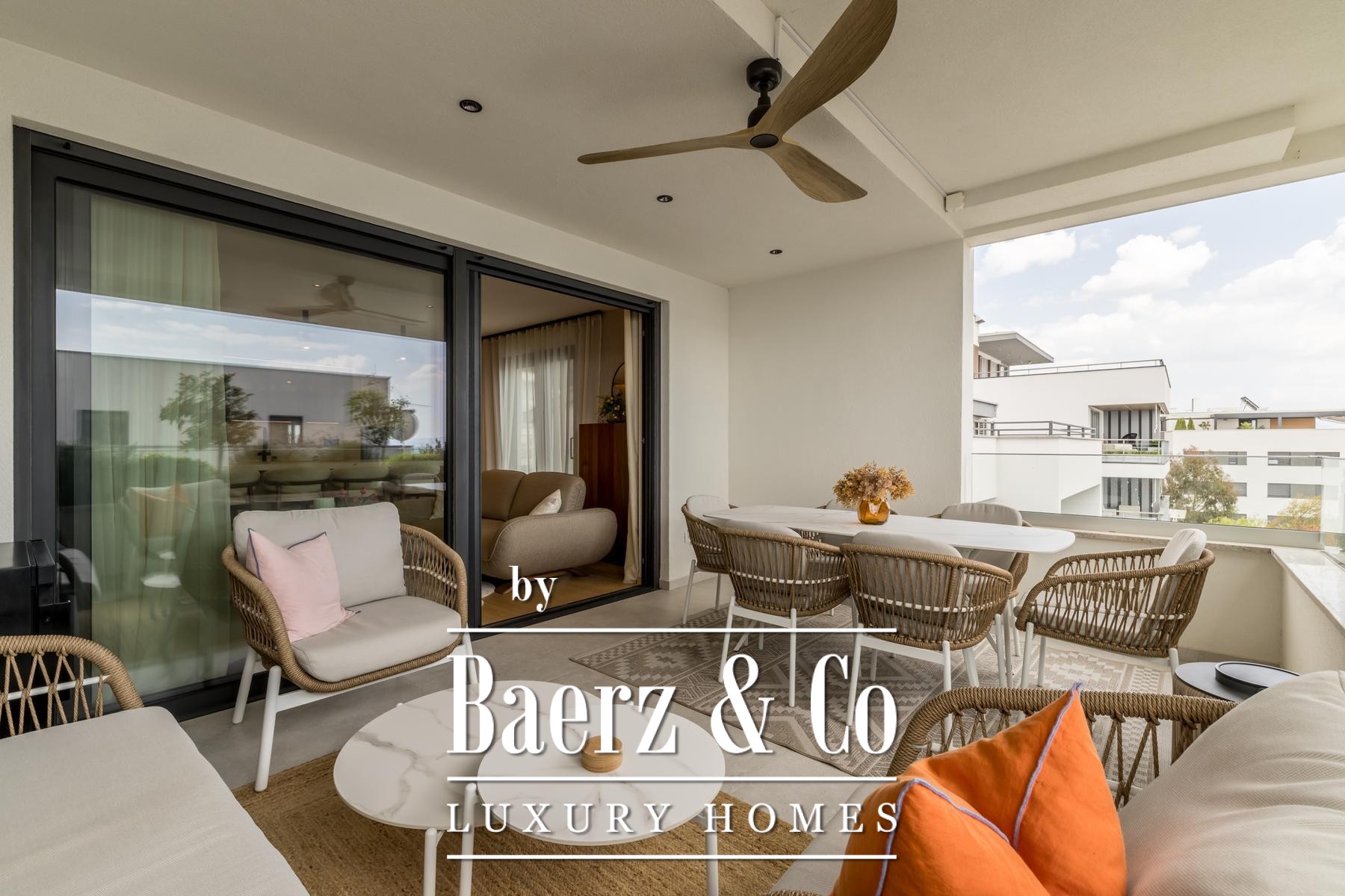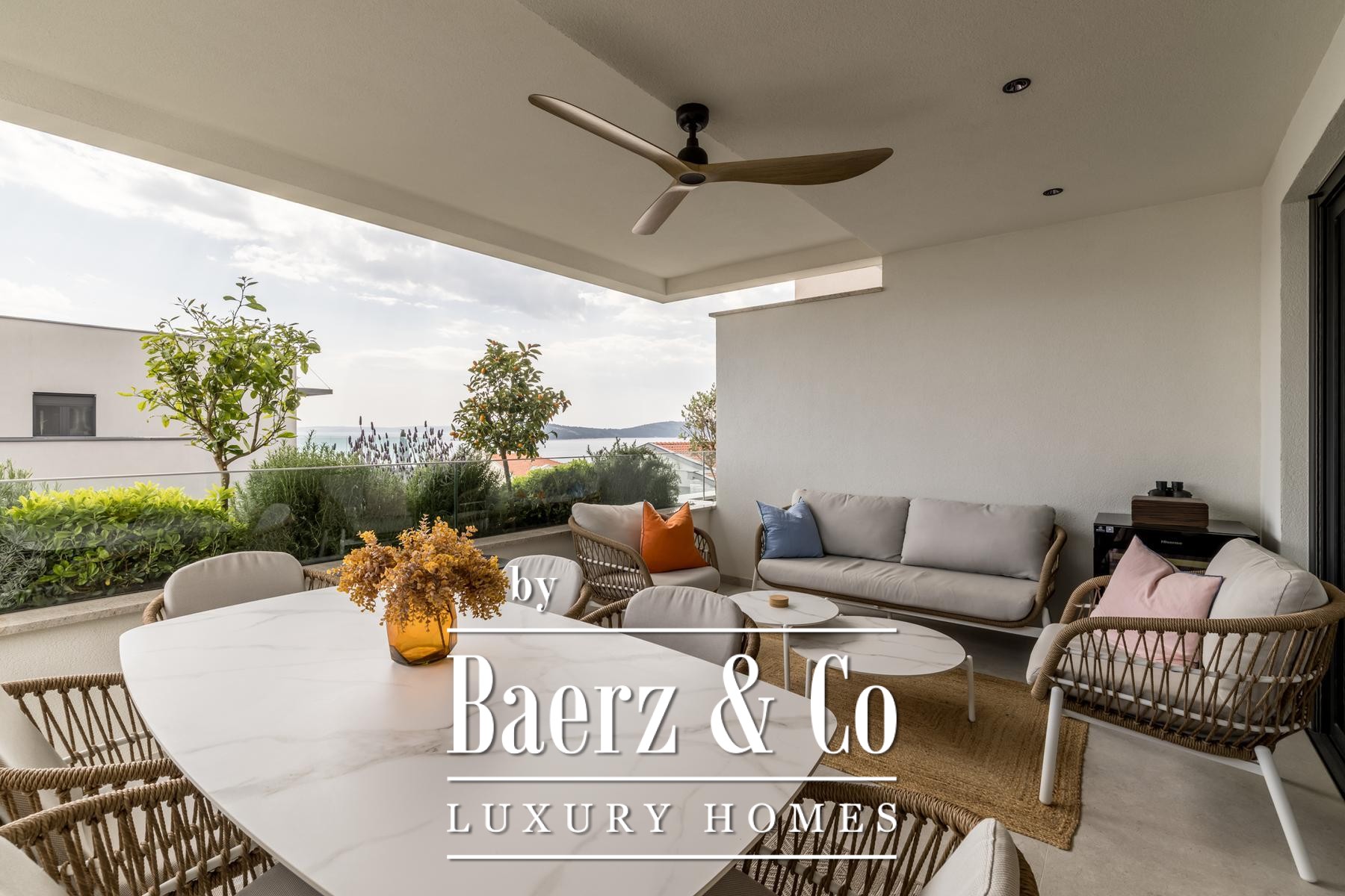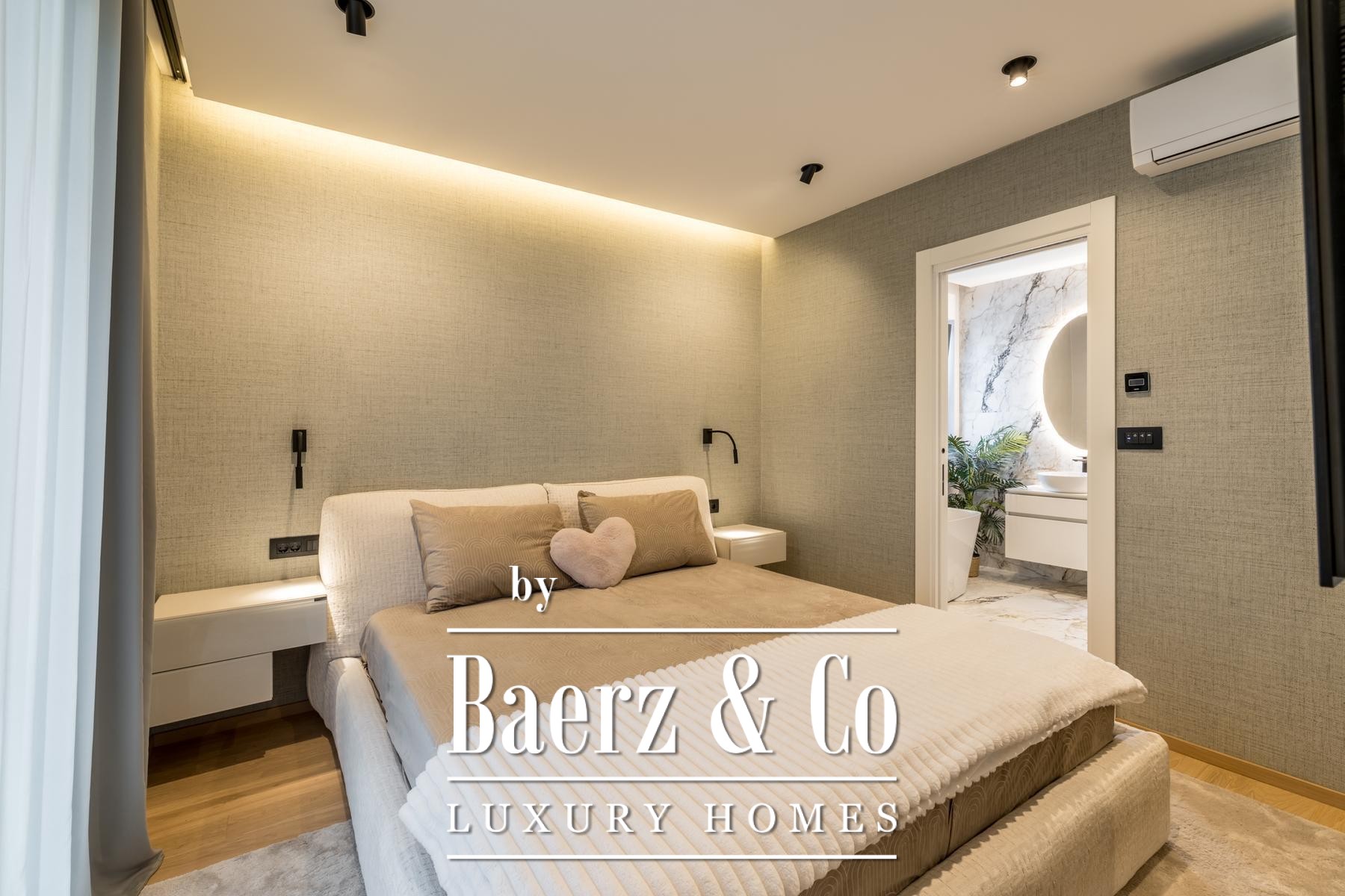 Een op het zuiden gelegen loggia van 18,35 m² biedt uitzicht over zee, ideaal gesitueerd voor ontspanning het hele jaar door. De technische specificaties omvatten een warmtepompsysteem, vloerverwarming, hoogrenderende airconditioning, Schuco-beglazing, elektrische rolluiken en een automatisch irrigatiesysteem. Beveiligingskenmerken omvatten inbraak- en brandwerende deuren. De woning beschikt over een parkeerplaats in de garage en een berging, zeldzame en waardevolle extra’s in deze gewilde buurt.