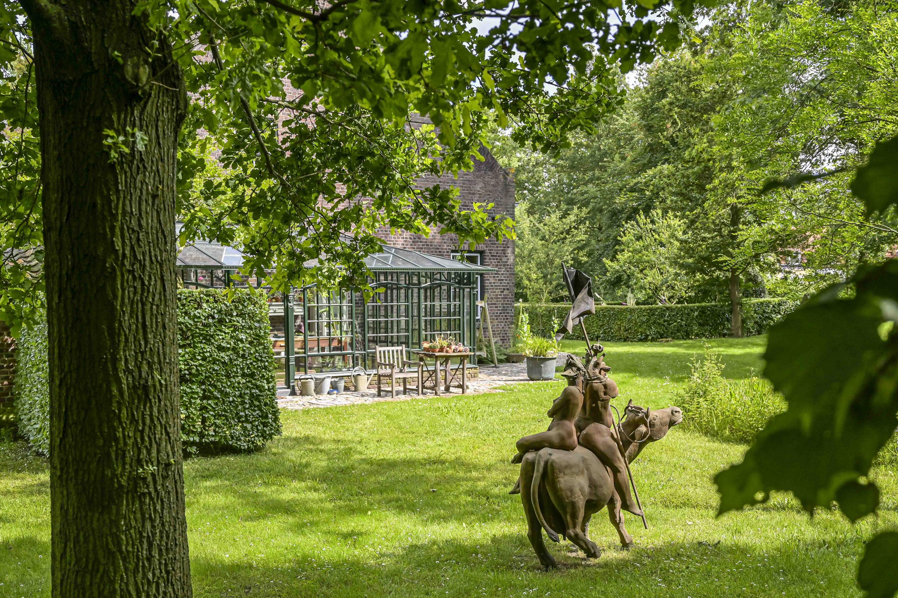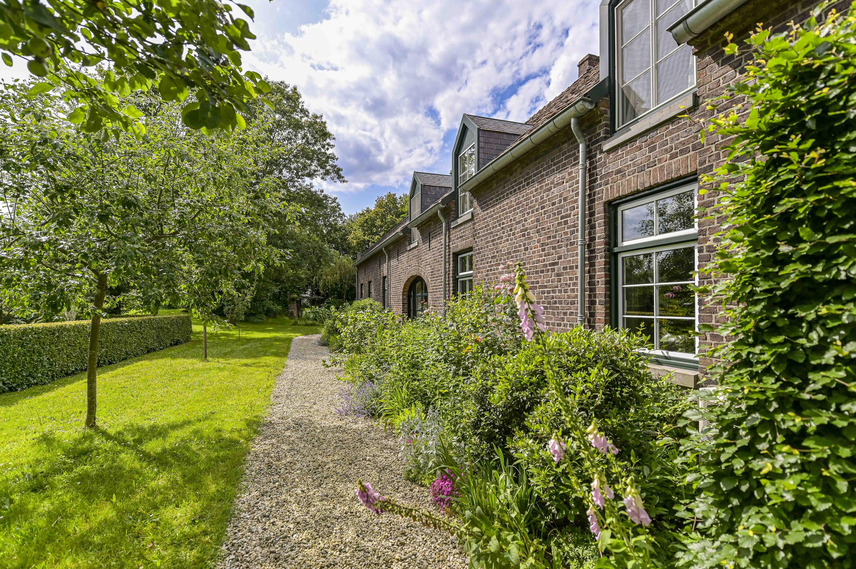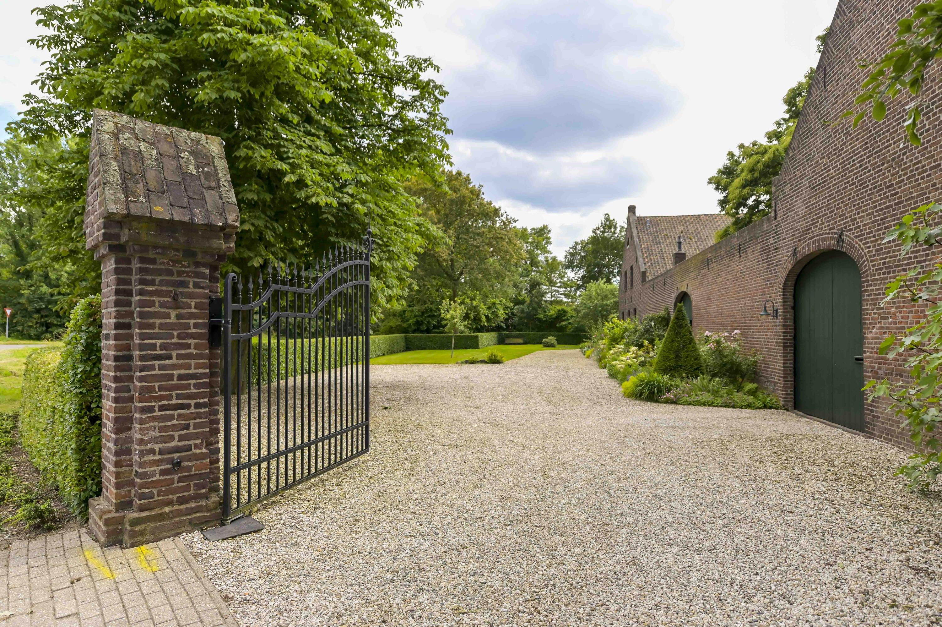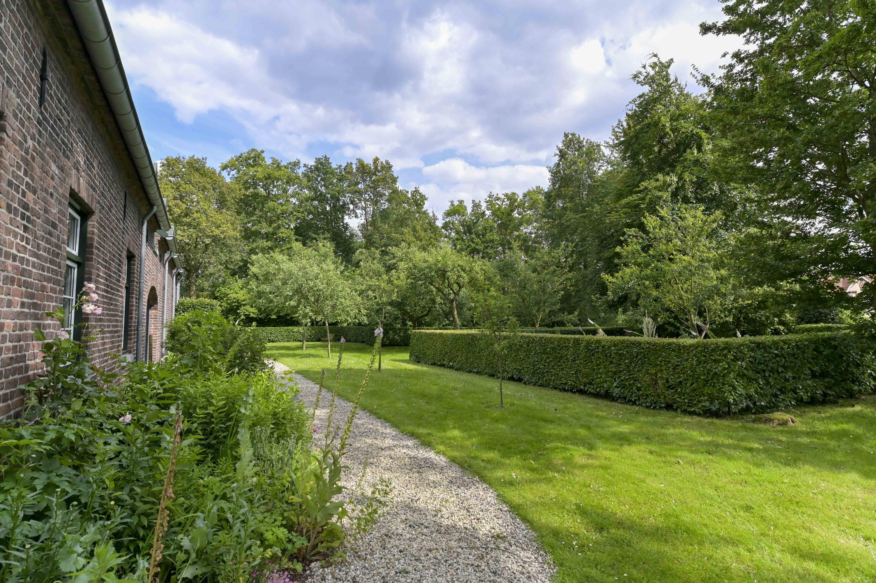 Uniek perceel van 7616m² met zeer veel groen, een royale vijver en diverse wandelpaden. U kunt hier heerlijk in eigen bostuin wandelen en toch waant u zich ergens anders. Het geheel zorgt voor een unieke flora en fauna op het terrein. Op het gehele perceel is een beregeningssysteem aanwezig. Op de vlonder bij de vijver kunt u aan het water rustig genieten van een zomerse avond. De oprijlaan met elektrische poort leidt u naar de monumentale woning.