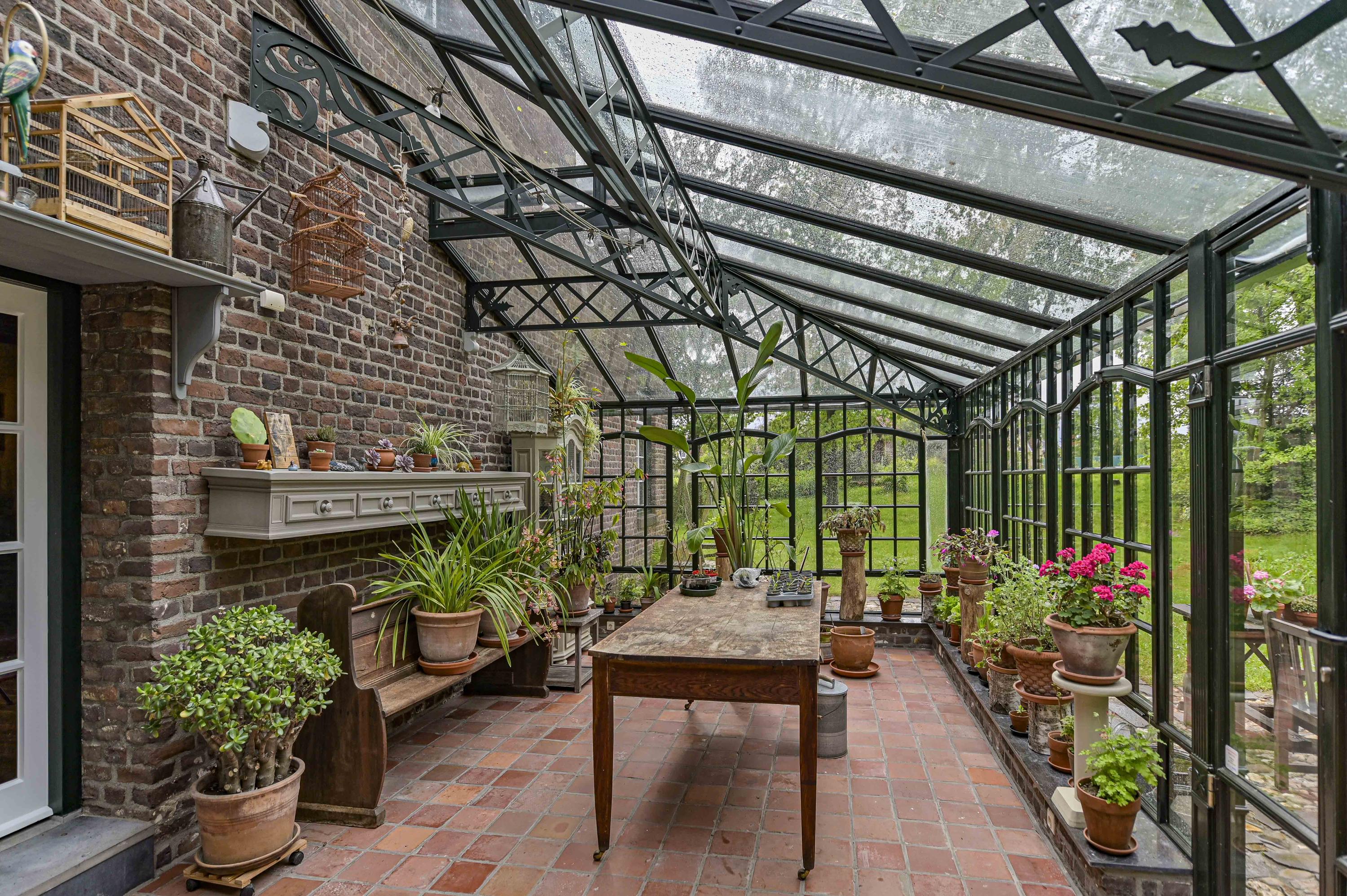 De prachtige aluminium serre (ca. 28m²) is uniek en voorzien van vloerverwarming. Vanuit hier is er prachtig uitzicht op de eigen tuin met zeer veel groen en een royale vijver. De aansluitende berging biedt toegang tot het berghok/bijkeuken (ca. 15m²) met cv-ketel, de sauna (ca. 5m²) en de binnentuin.