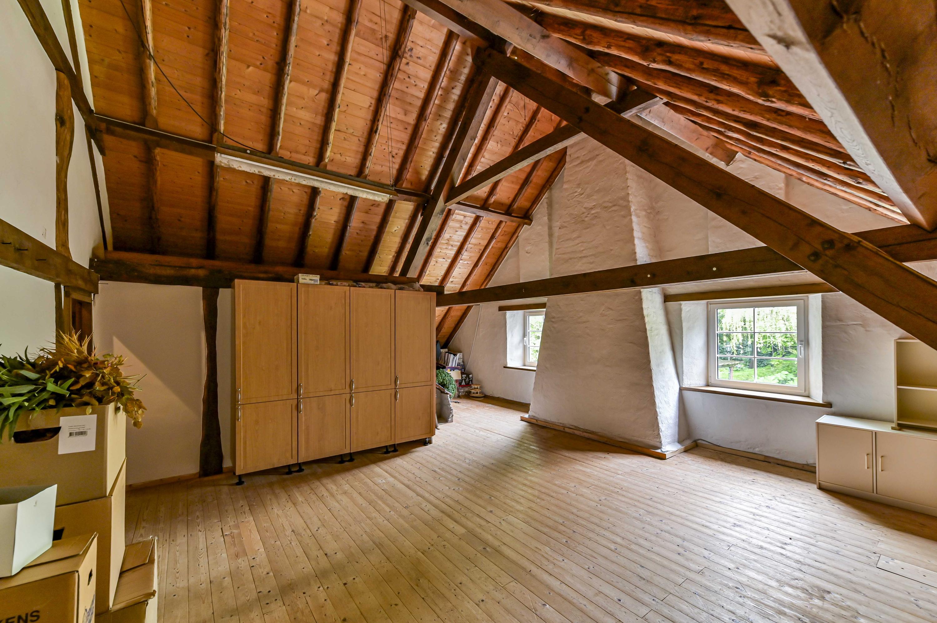 - Een grote en zeer hoge zolder (ca. 47m²).