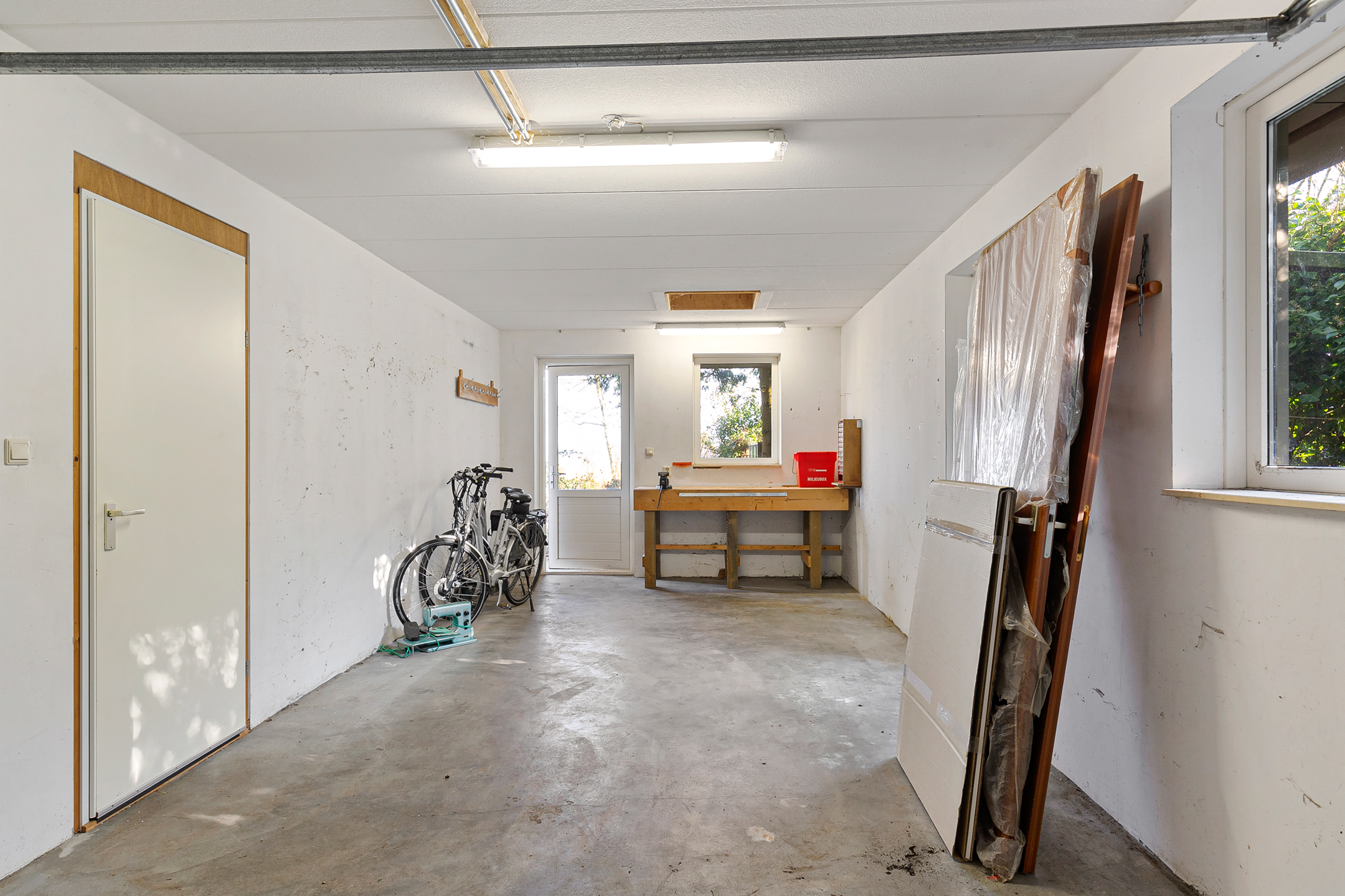 De royale inpandige garage is voorzien van betonvloer, garagedeur, tuindeur en raampartijen. Er is ruimte voor een grote auto, werkbank, fietsen en extra opslag. Het is mogelijk van deze ruimte kantoor- of praktijkruimte te maken. Op de eigen oprit is plaats voor twee auto’s en direct voor de woning is aanvullende parkeergelegenheid.