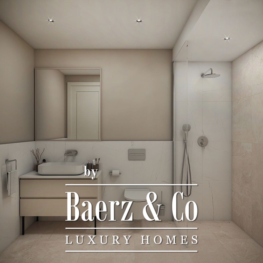 De indeling omvat een open woonkamer met geïntegreerde keuken en eetruimte, een slaapkamer, een badkamer en soepele verbindingen naar een buitenterras en mediterrane tuin met lavendel en olijf. Het interieur kenmerkt zich door ingetogen kleurstellingen, inbouwkasten tot aan het plafond en Nolte keukens met geïntegreerde apparatuur. Maatwerk meubilair, video-intercom bij de entree, vloerverwarming in de badkamer en een windvrij airconditioningsysteem onderstrepen het oog voor luxe en comfort.
