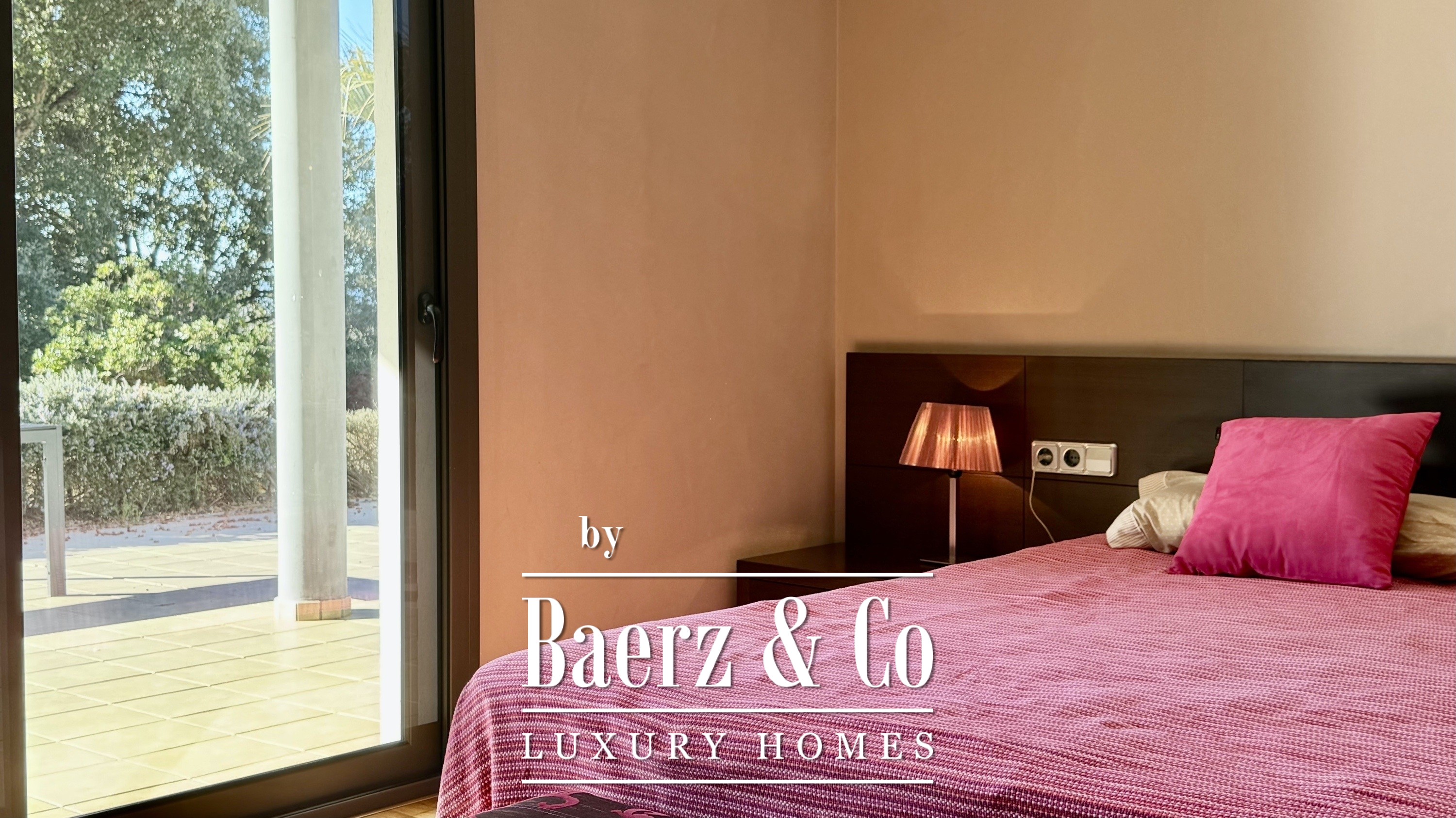 Op de bovenverdieping bevinden zich drie extra slaapkamers—twee met eigen badkamer—en een aparte badkamer, waardoor privacy voor familie en gasten is gewaarborgd. Alle kamers genieten van veel licht, ruimtelijkheid en rustgevend uitzicht, met zowel zee- als plattelandspanorama’s verspreid door de woning. Buiten draait het leven om de fraai aangelegde mediterrane tuin en het privézwembad, omlijst door terrassen en een paviljoen met kleedfaciliteiten.