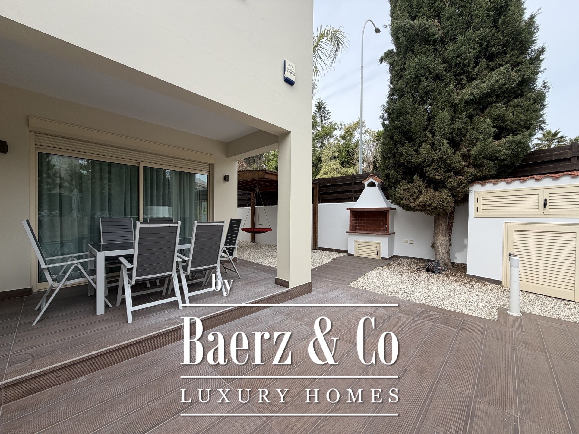 De volledig gemeubileerde villa strekt zich uit over drie verdiepingen, met een interne woonoppervlakte van 214 m² op een perceel van 463 m². In 2024 geheel gerenoveerd, beschikt de villa over vijf slaapkamers, vijf badkamers en een gastentoilet. Vier slaapkamers bevinden zich op de tweede verdieping, terwijl de royale master suite met eigen badkamer en privéberging de bovenste etage beslaat. De keuken kijkt uit op de fraai aangelegde tuin en wordt aangevuld door een aparte eetkamer en een sfeervolle woonkamer met stoomhaard. Materialen zoals tegels, marmer en laminaat zijn stijlvol op elkaar afgestemd.