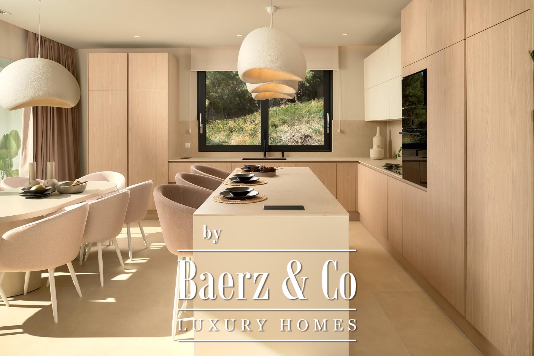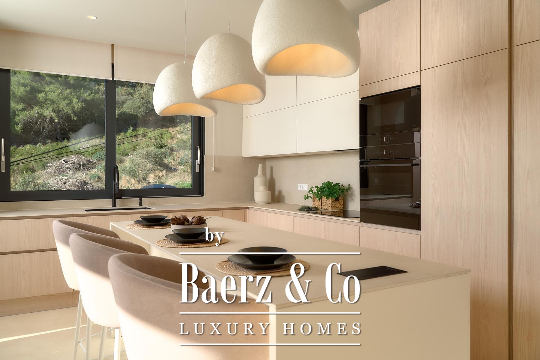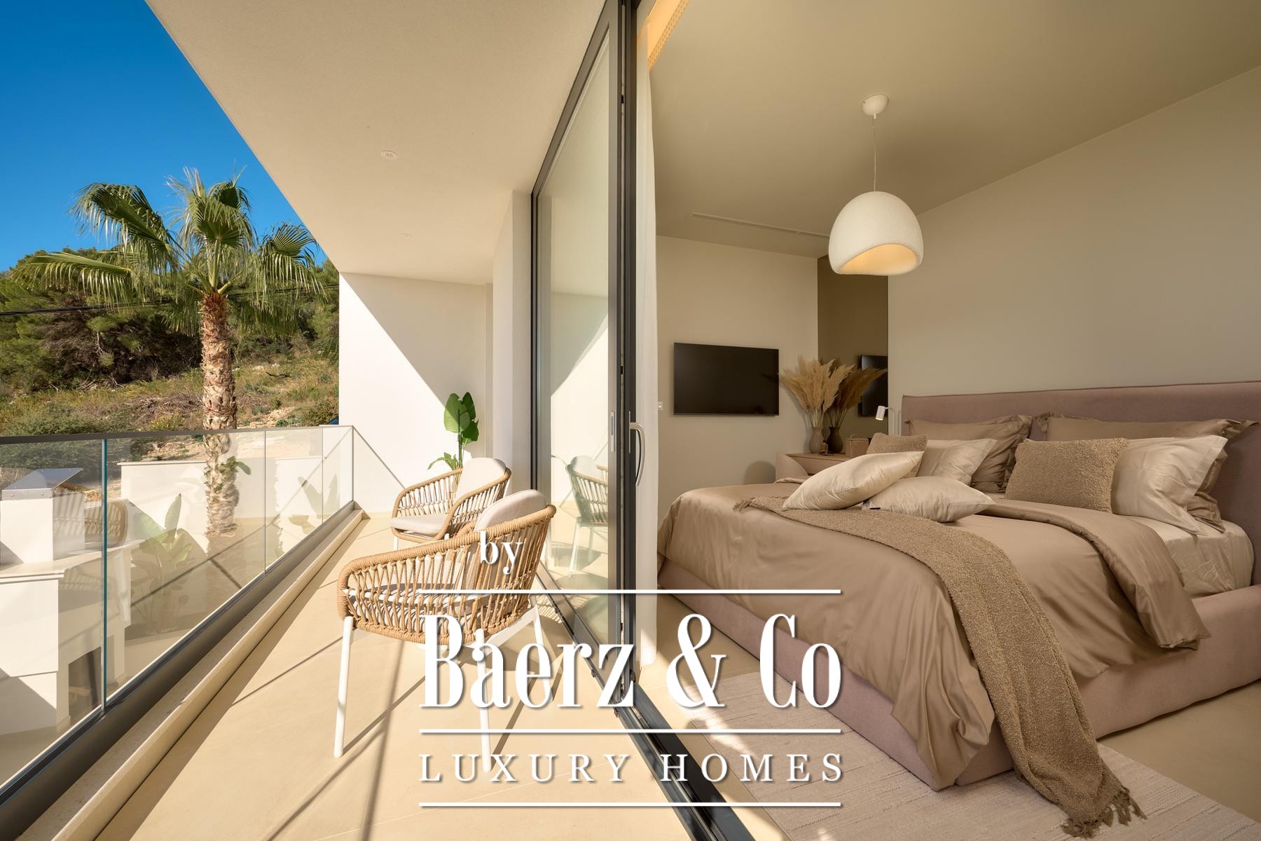 De bouwkwaliteit is compromisloos met plafondairconditioning, vloerverwarming via warmtepompen, gebalanceerde ventilatie, thermische isolatie, aluminium kozijnen, glazen balustrades, zonnepanelen, automatische tuinirrigatie en videobewaking. Twee onoverdekte parkeerplaatsen en mediterrane tuinaanleg completeren het geheel.