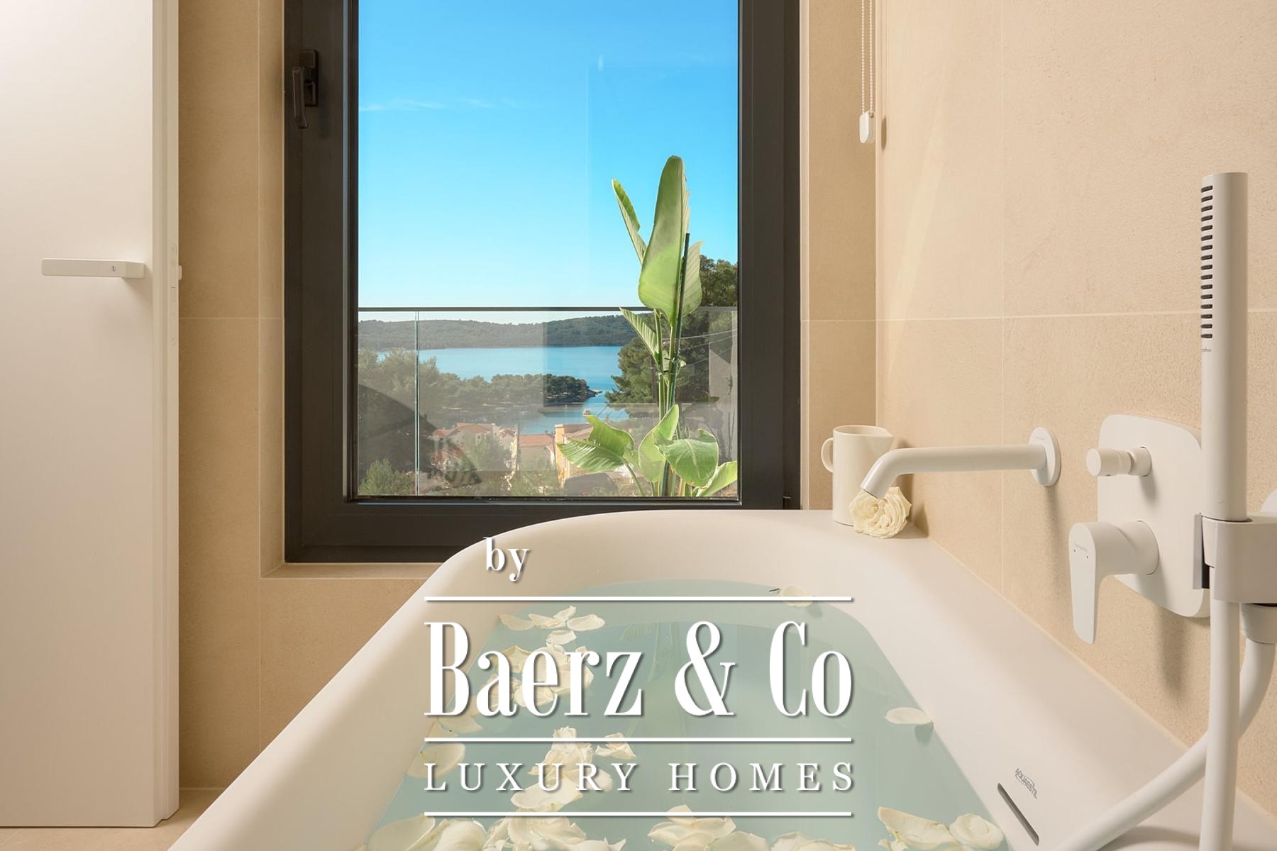 Gelegen op slechts enkele meters van de zee, 330 meter van het strand, 500 meter van winkels en vlakbij Trogir, Split Airport en de stad Split, belichaamt deze moderne villa in Trogir ingetogen luxe — ideaal als verfijnde gezinswoning of strategische investering.