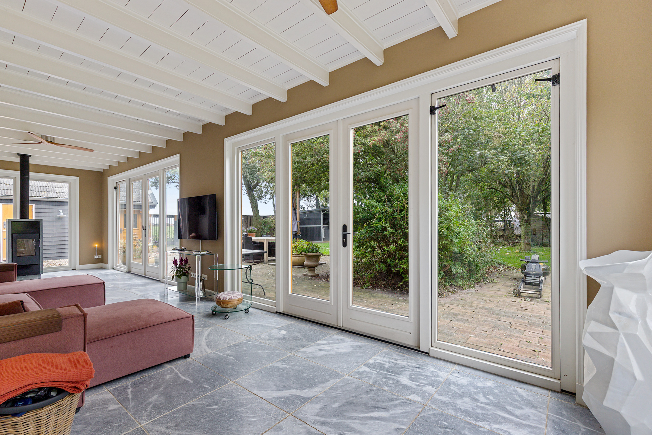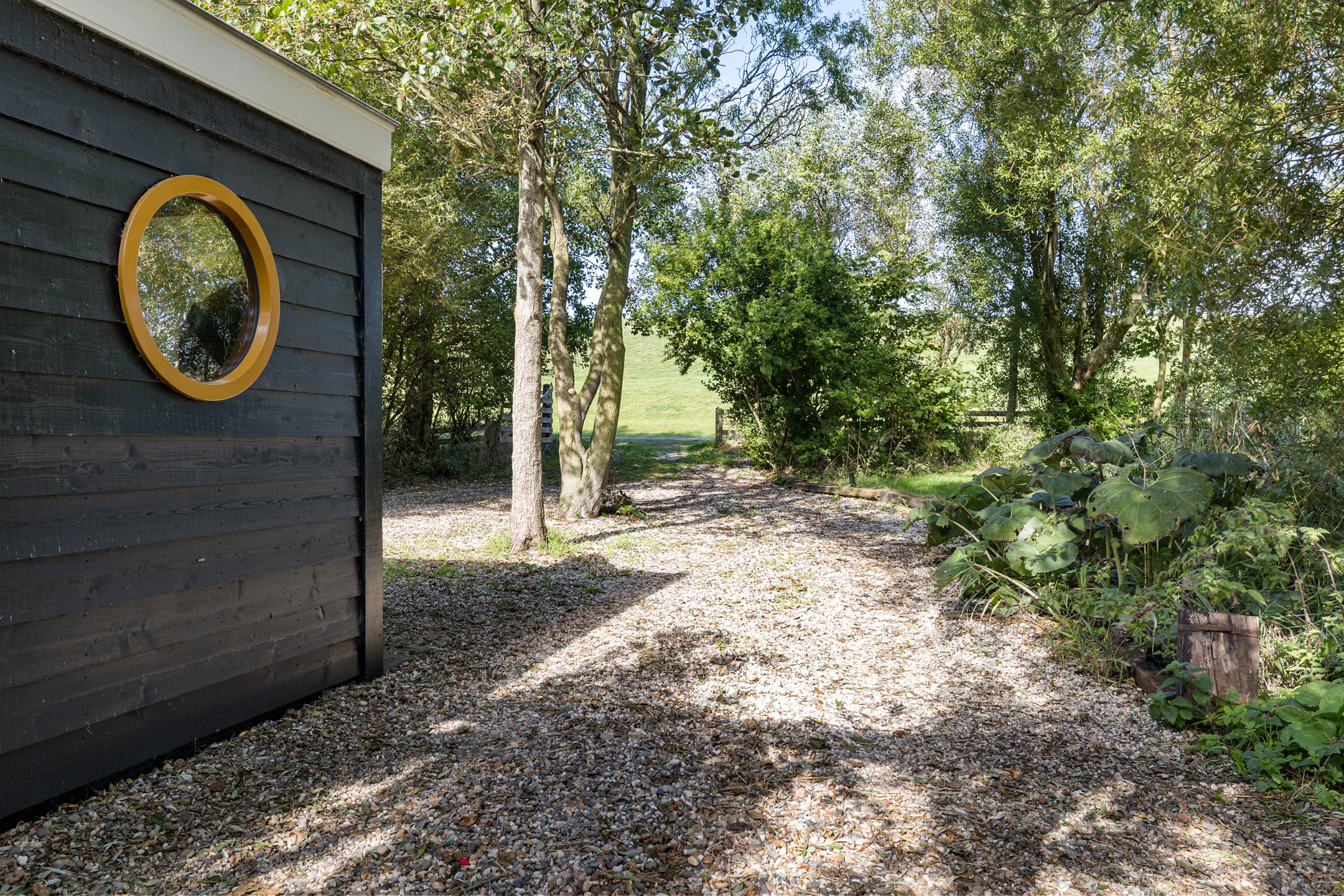 Achter in de tuin, grenzend aan de vijver en met de mogelijkheid voor een eigen oprit, is een modern vrijstaand bijhuis gebouwd met totale privacy ten opzichte van het dijkhuis. Deze zelfstandige, hotel-chique woonruimte beschikt over open keuken, living, badkamer en in de loft een slaapkamer en atelier/werkkamer. Perfect voor dubbele bewoning, werken aan huis of mantelzorg.