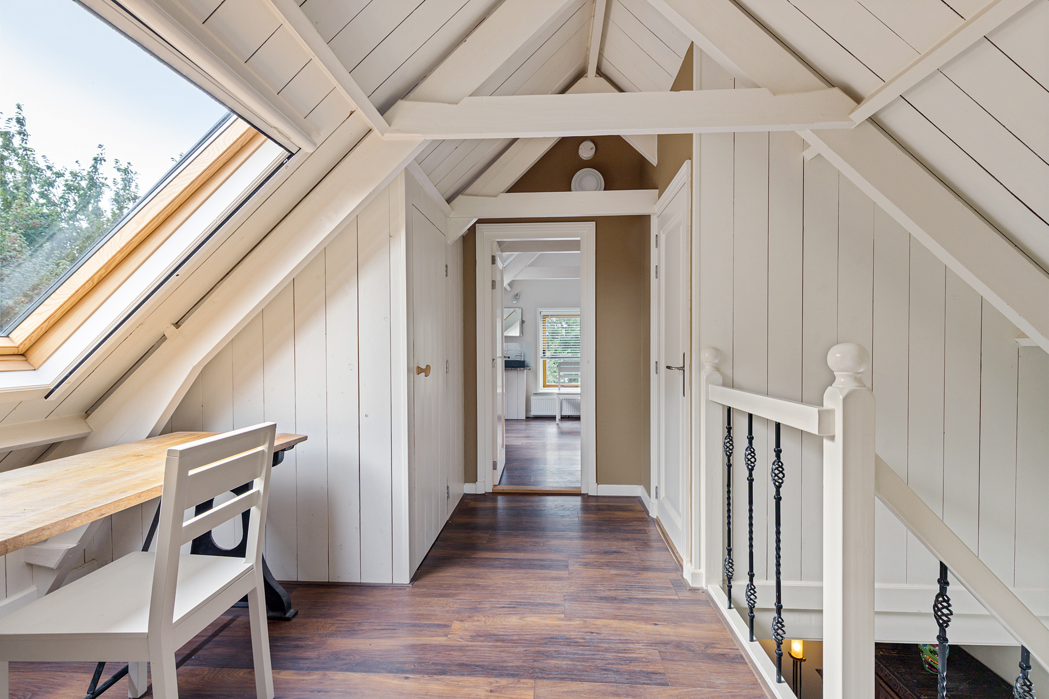 De sfeer van de oude dijkwoning blijft voelbaar. Twee knusse, stijlvolle slaapkamers, overloop met royale inbouwkasten onder het zadeldak, dakbeschot en gebinten in het zicht. Beide slaapkamers zijn voorzien van een wastafelmeubel.