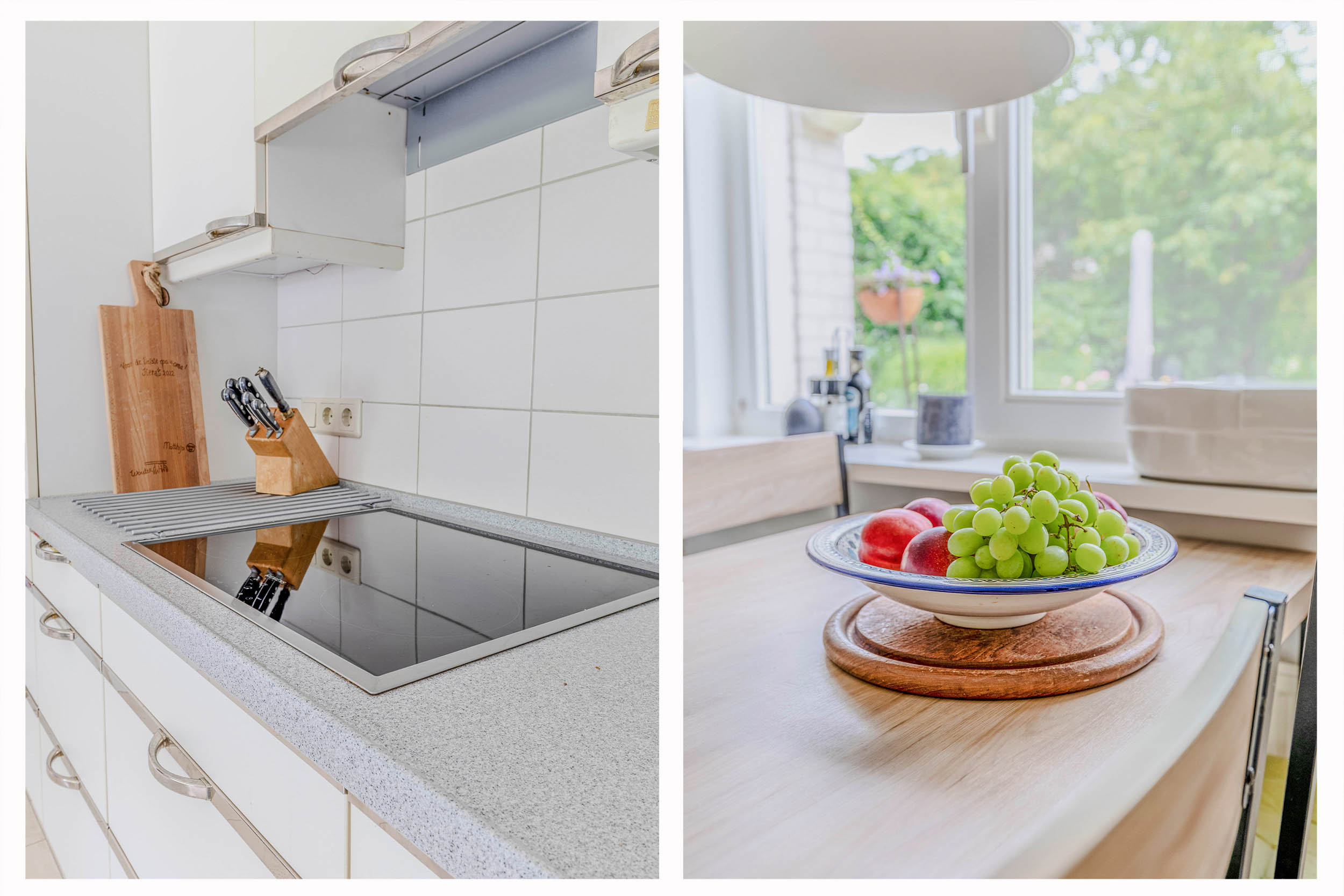Vanuit de woonkamer loopt u via een schuifpui naar het royale- en deels overdekte terras en tuin. De ramen zijn voorzien van automatische zonwering.