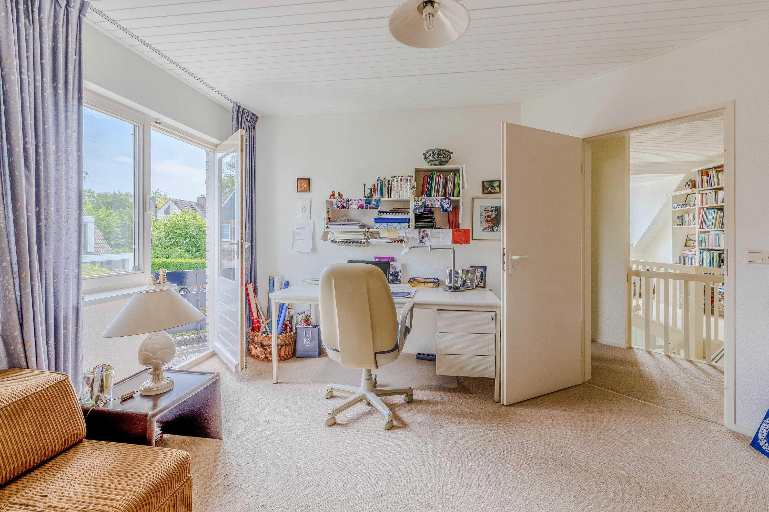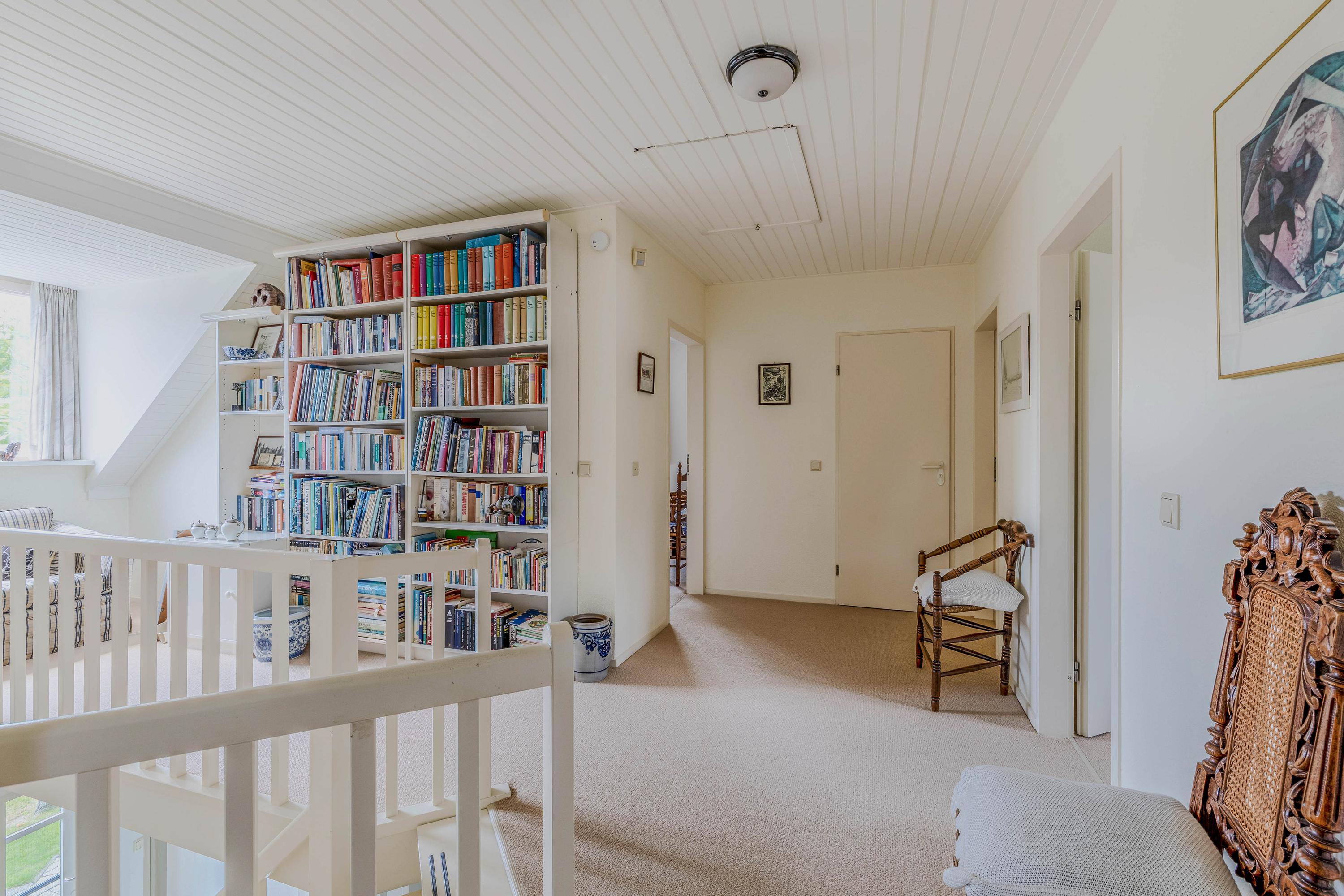 U kunt genieten van een ruime en lichte woonkamer van 62m² met een prachtig uitzicht op de mooi aangelegde tuin. De woonkamer is voorzien van een erker en een tv-hoek waar de fraaie architectuur mede door het dakvenster tot uitdrukking komt. Daarnaast is er een open haard aanwezig.