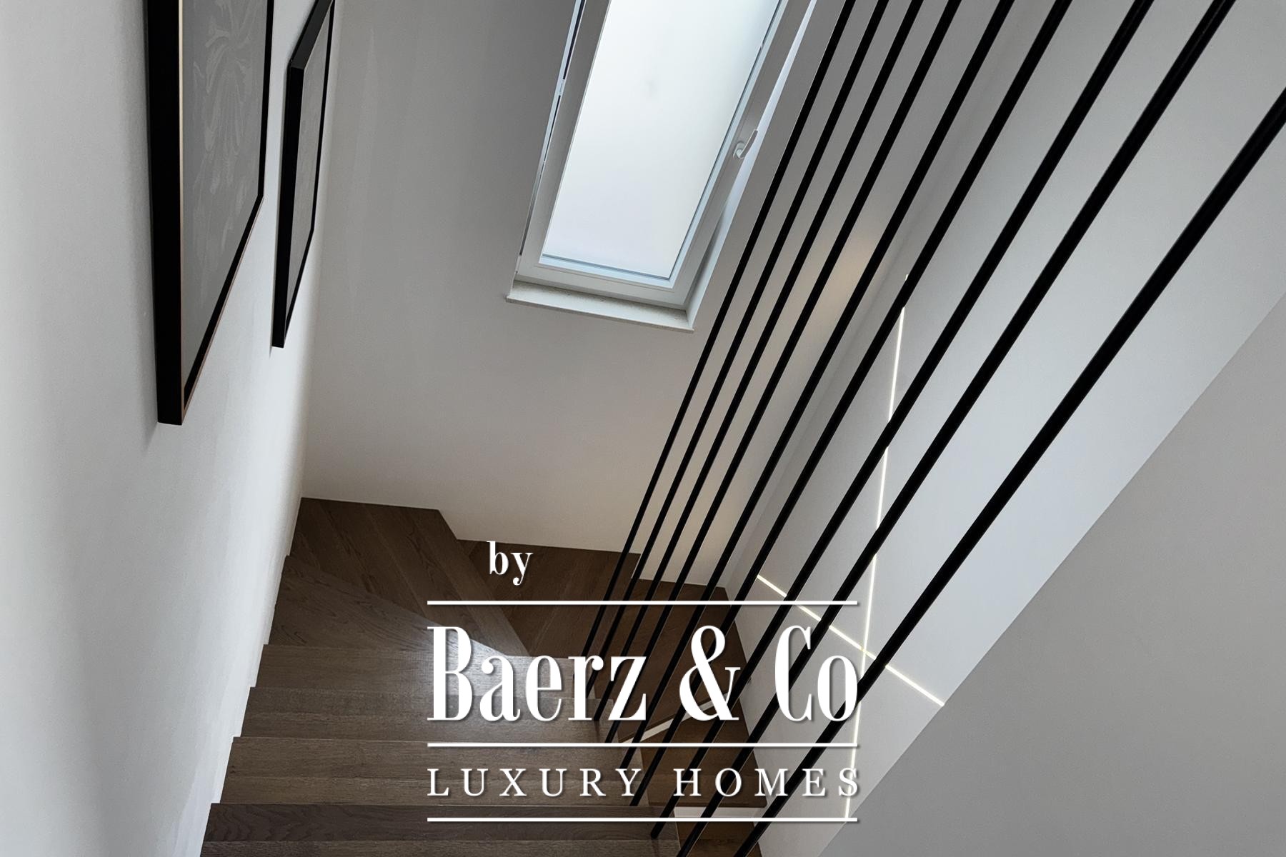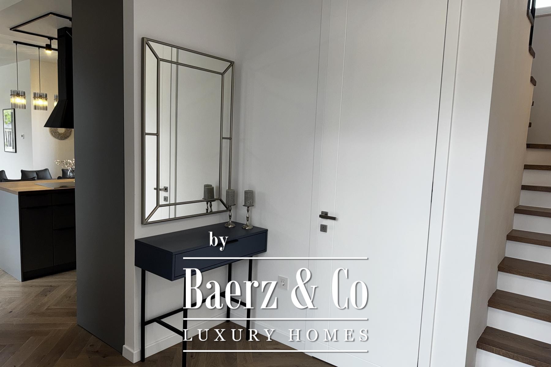 Op de eerste verdieping bevinden zich drie slaapkamers, waaronder een master suite met inloopkast en een secundaire suite met eigen badkamer en toegang tot het terras. Hierdoor ontstaat een doordachte balans tussen privacy en lichtinval. Hoogwaardige materialen, zoals drielaags parket, massief houten trappen, hoge deuren en kwaliteitsafwerking, zorgen voor een sfeer van ingetogen luxe.