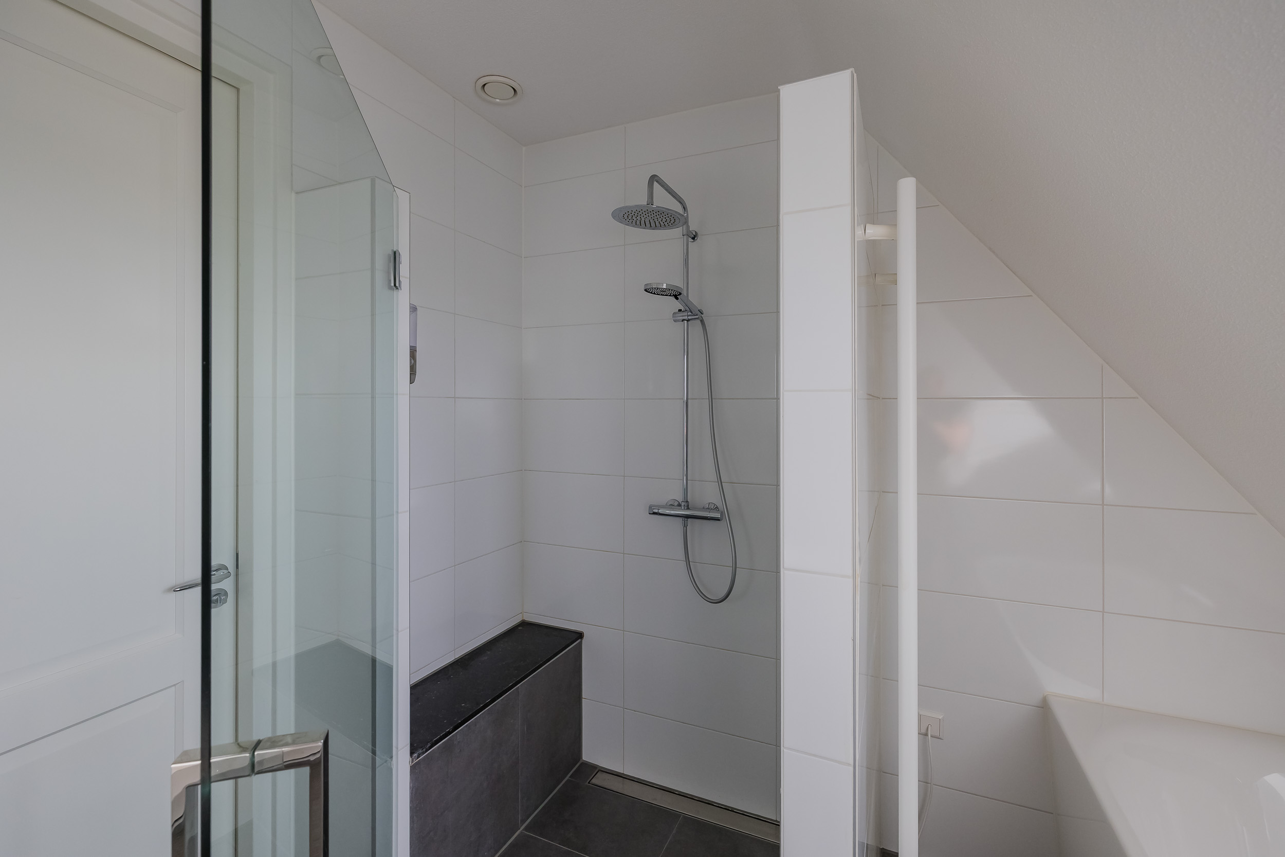 • Een tweede ruime slaapkamer met een eigen badkamer (douche en wastafel)