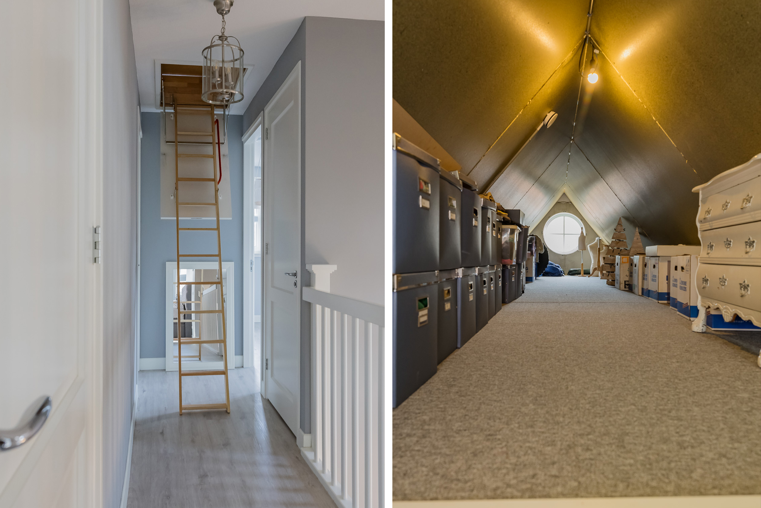 Via een vlizotrap bereik je de ruime bergzolder met stahoogte.