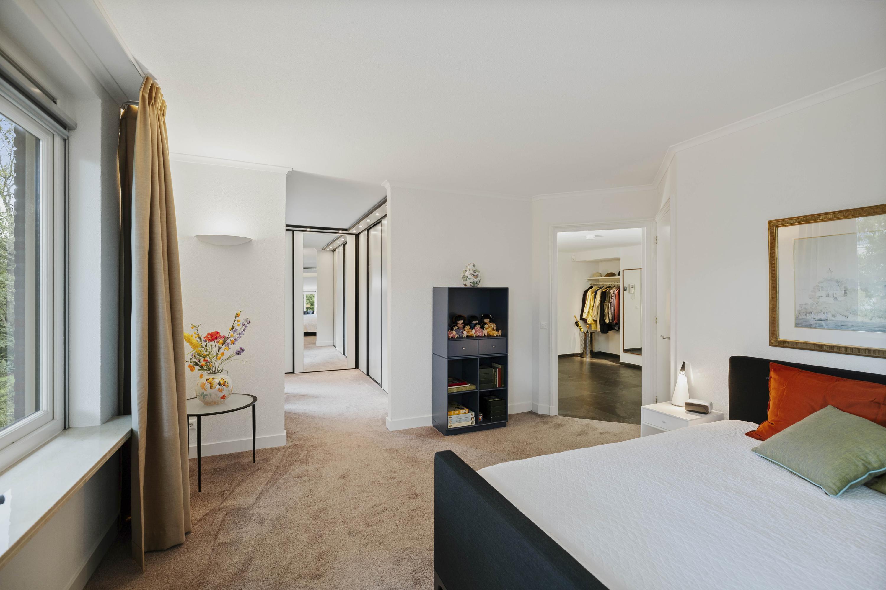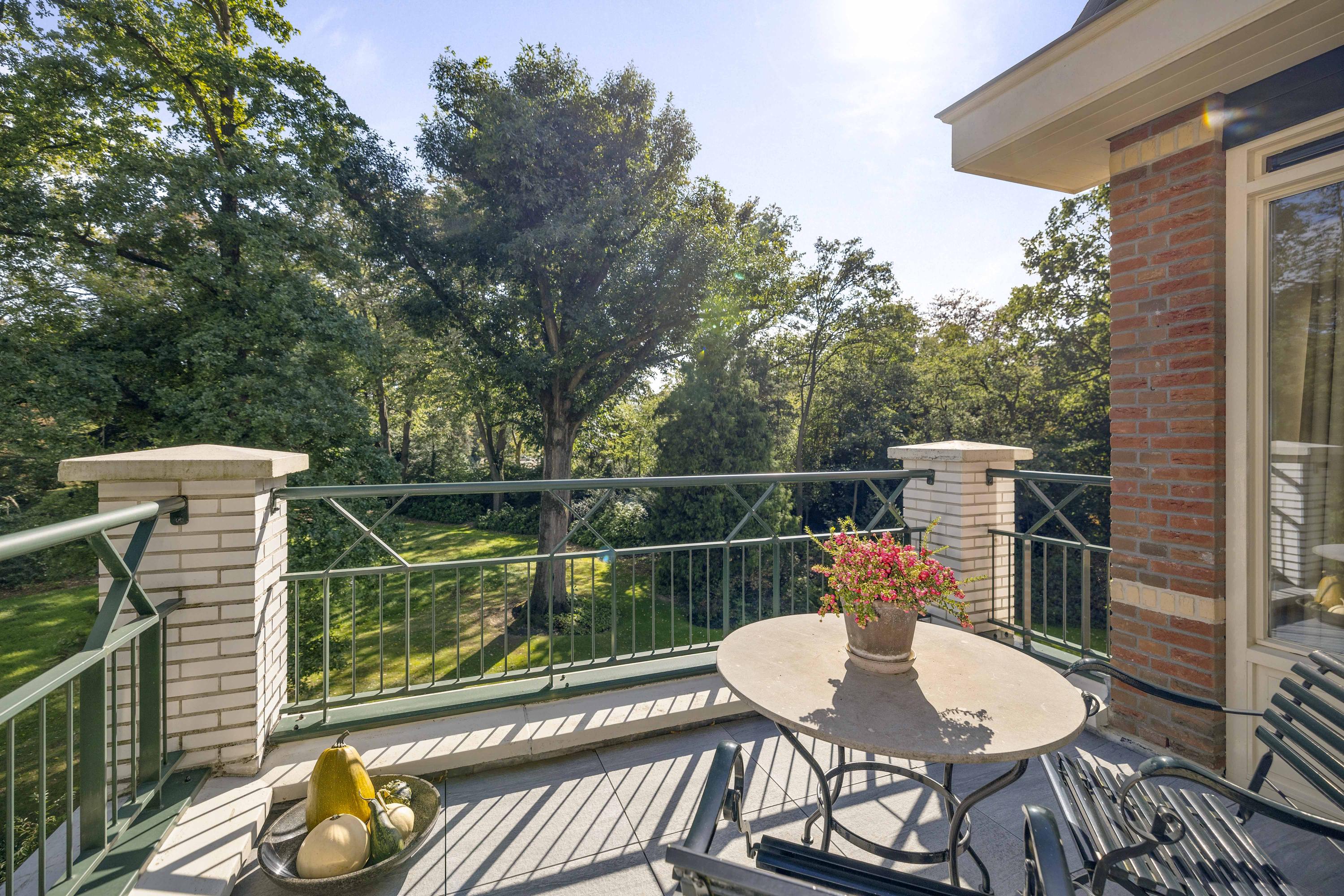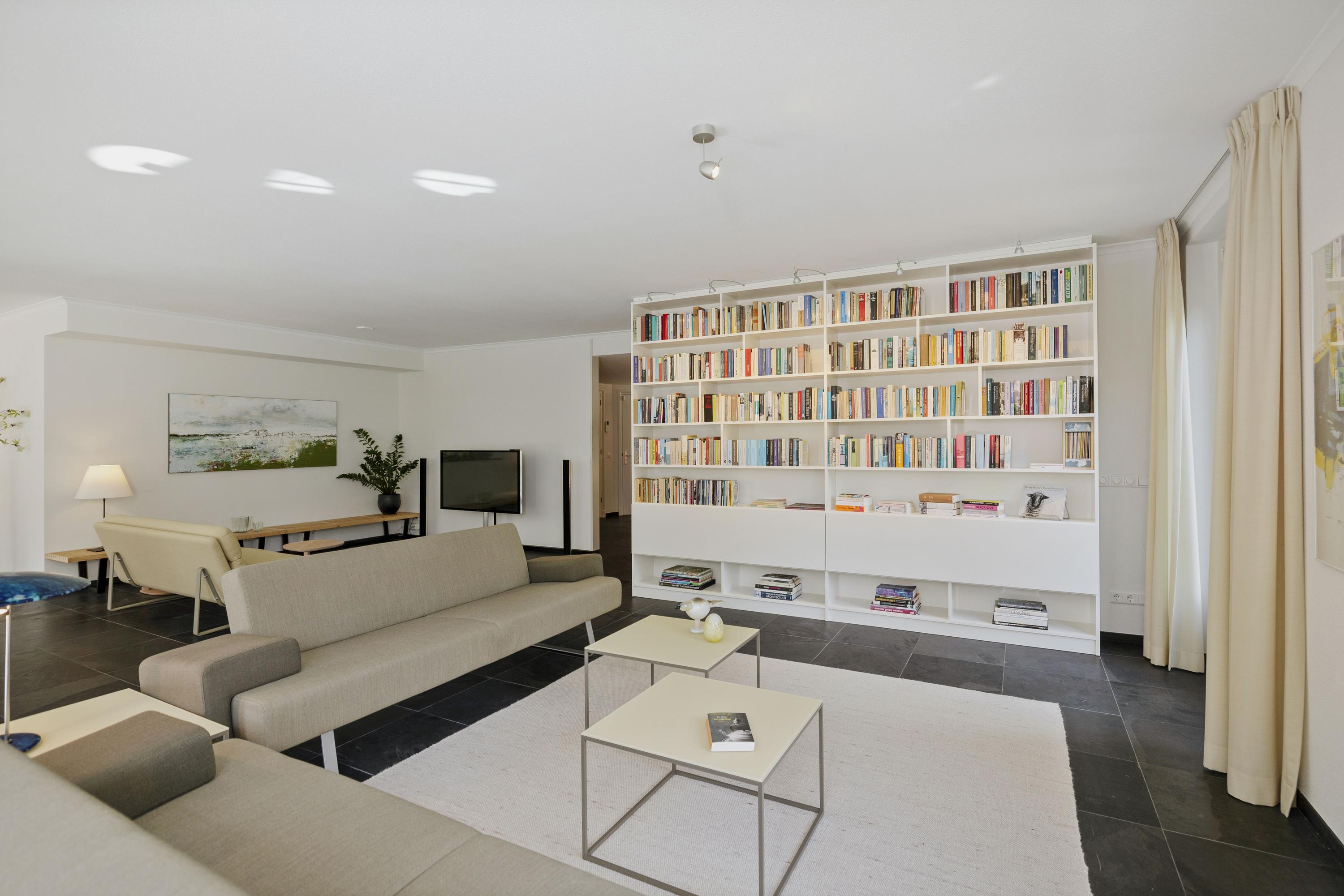 De riante woonkamer, met in het verlengde een ruime studeerkamer en-suite, biedt een prachtig uitzicht op het park en heeft openslaande deuren naar alle balkons.