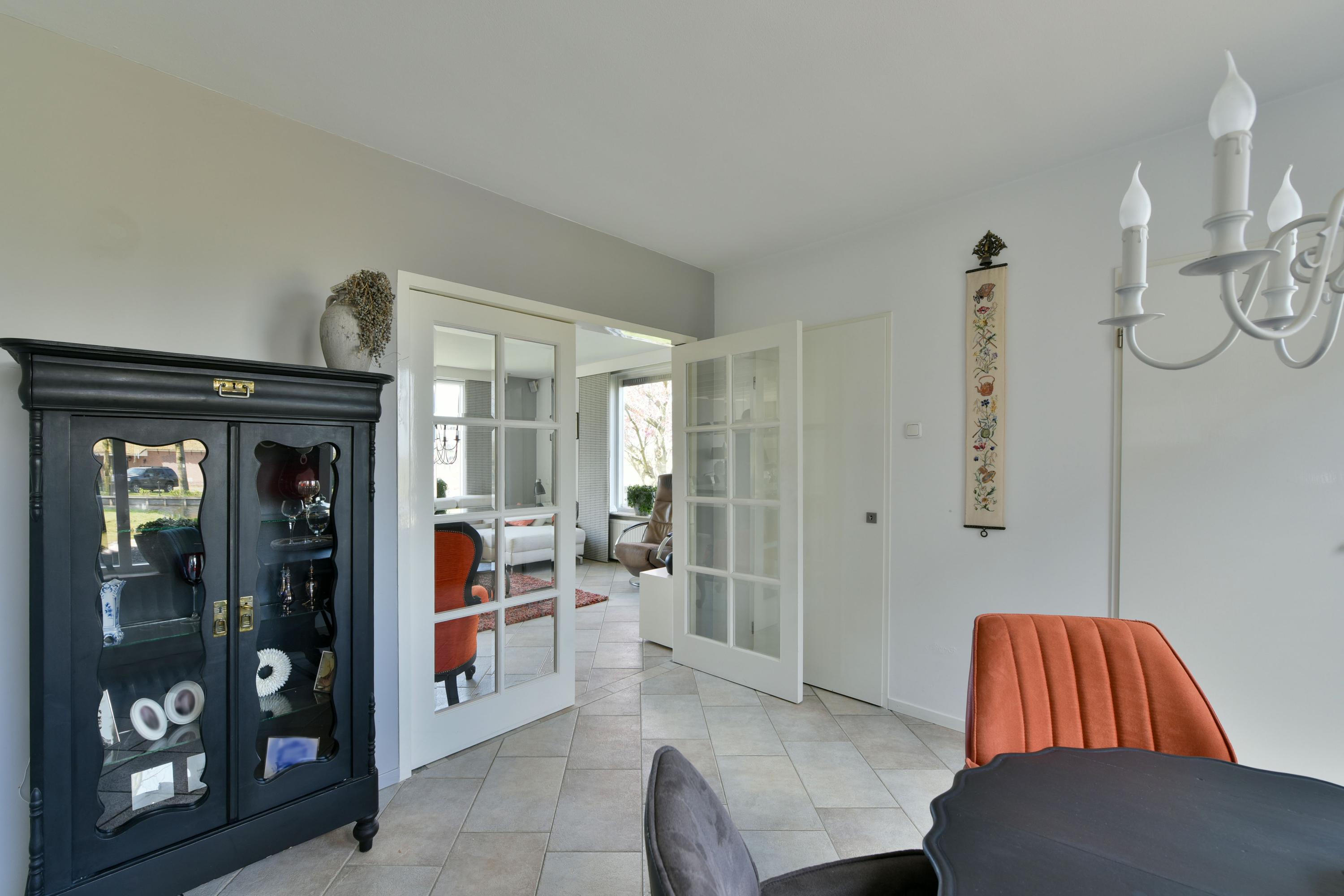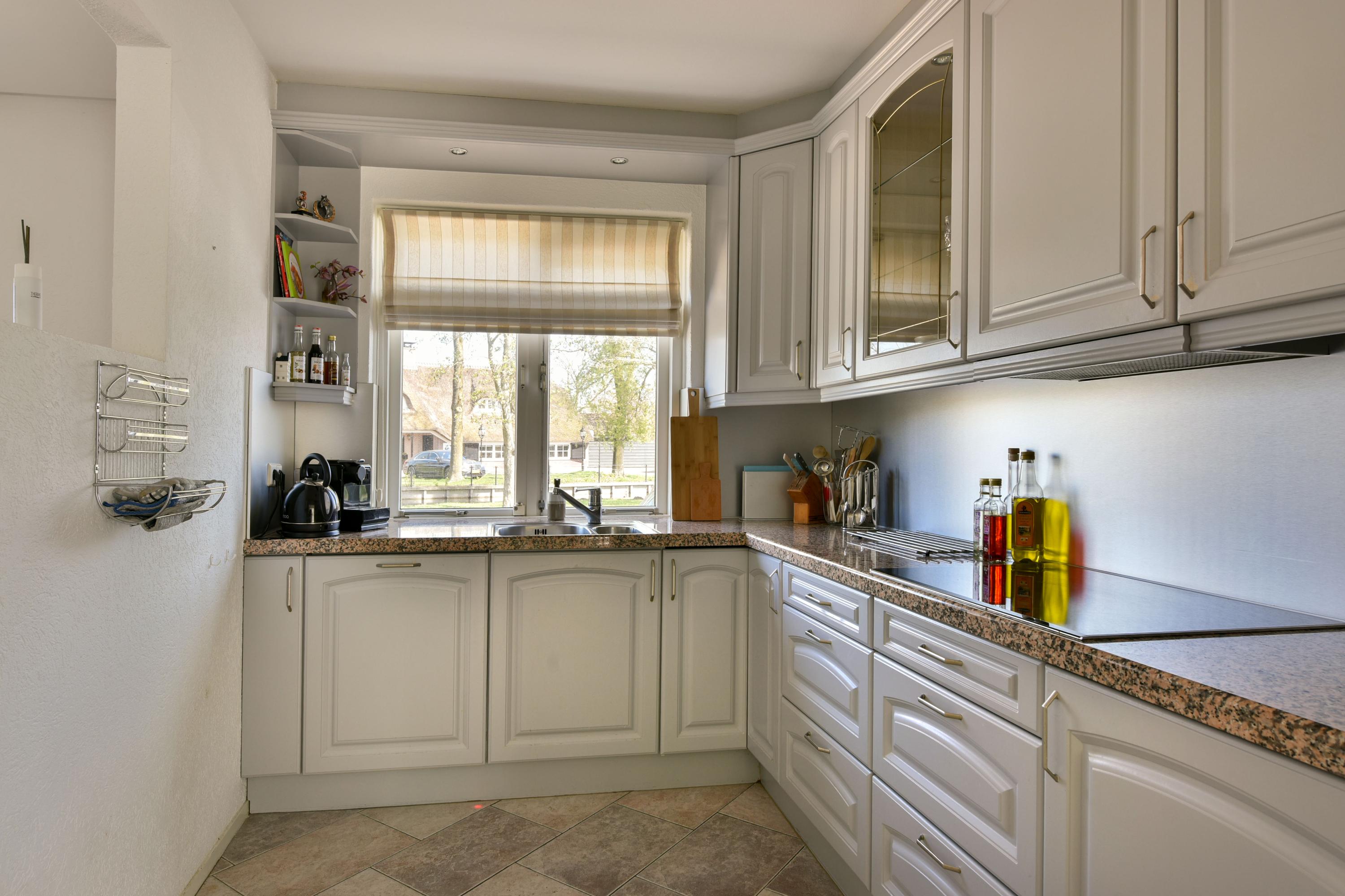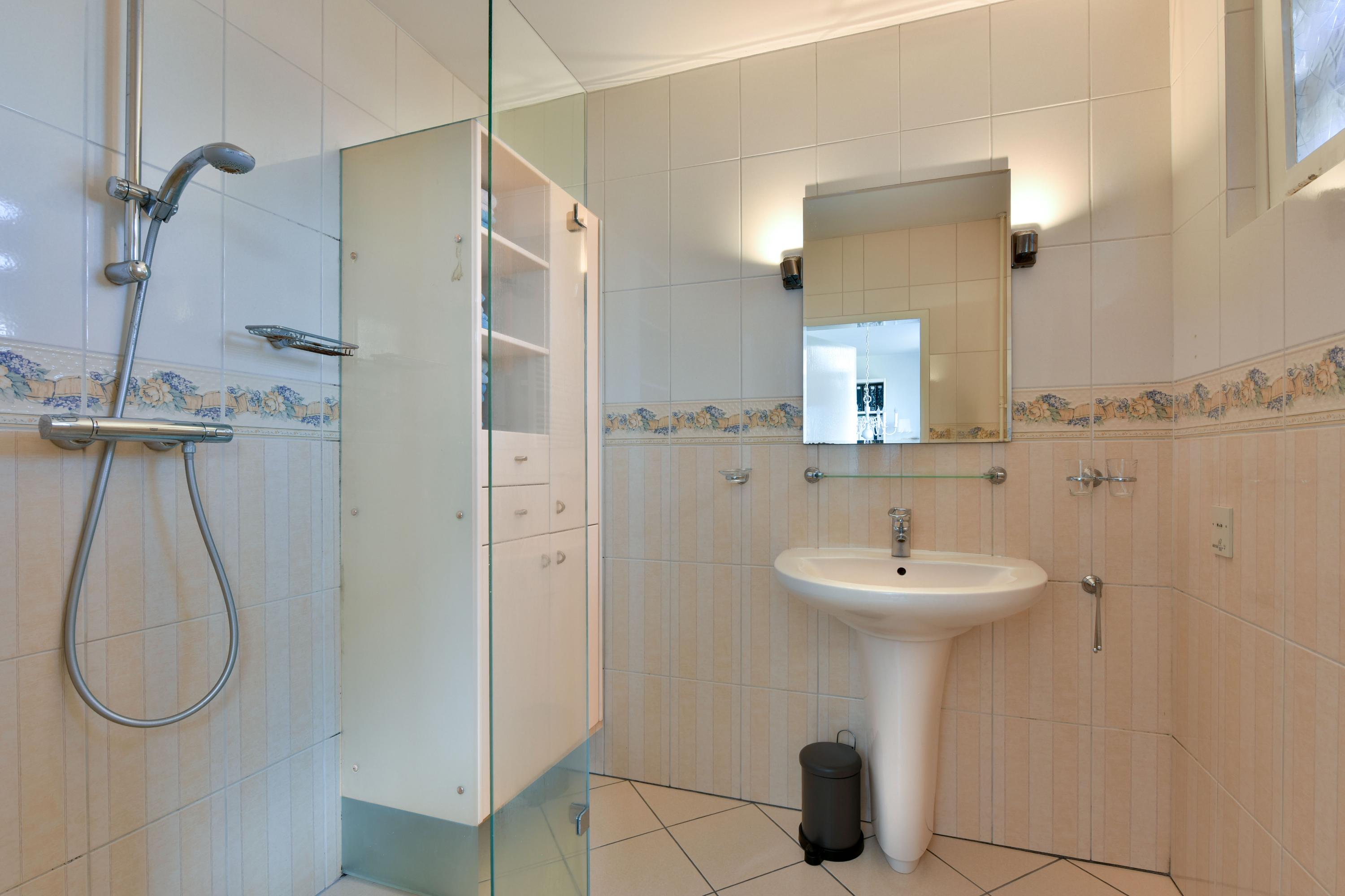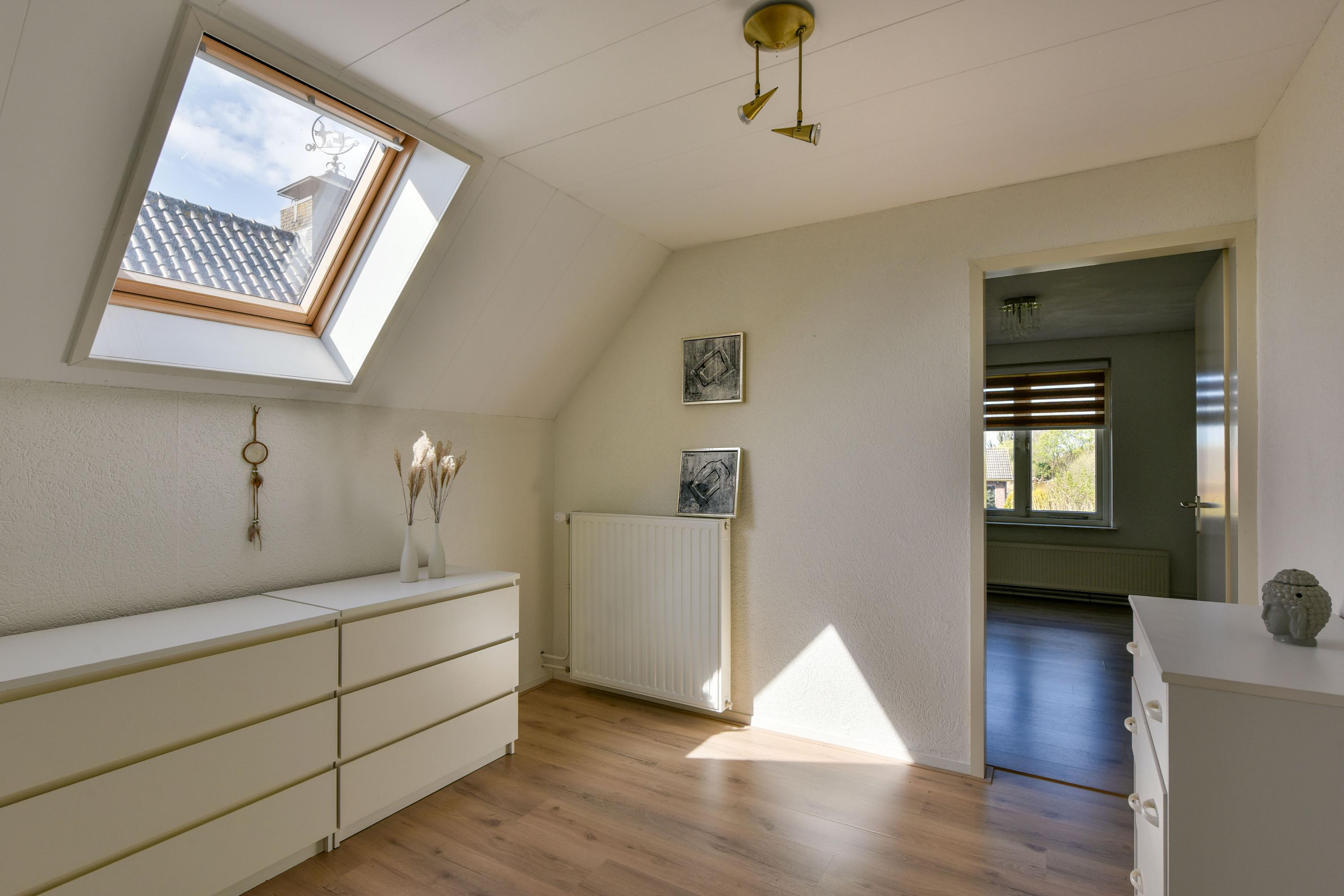 De tweede woning is net zo karaktervol, charmant en vol mogelijkheden. Ook hier word je verwelkomd door een ruime hal en een woonkamer met grote raampartijen, een sfeervolle gashaard en een warm houten laminaatvloer. De serre aan de achterzijde is een ware eyecatcher: licht, uitnodigend en met schuifpui naar de tuin. Een heerlijke plek om vier seizoenen lang te genieten van het uitzicht. De open keuken is praktisch en gezellig, met een inductiekookplaat, koelkast, vriezer, vaatwasser en combi-magnetronoven. Achterin de woning bevindt zich een ruime slaapkamer (nu in gebruik als inloopkast) met wastafel, naast een grote voorraadkast en het tweede toilet.