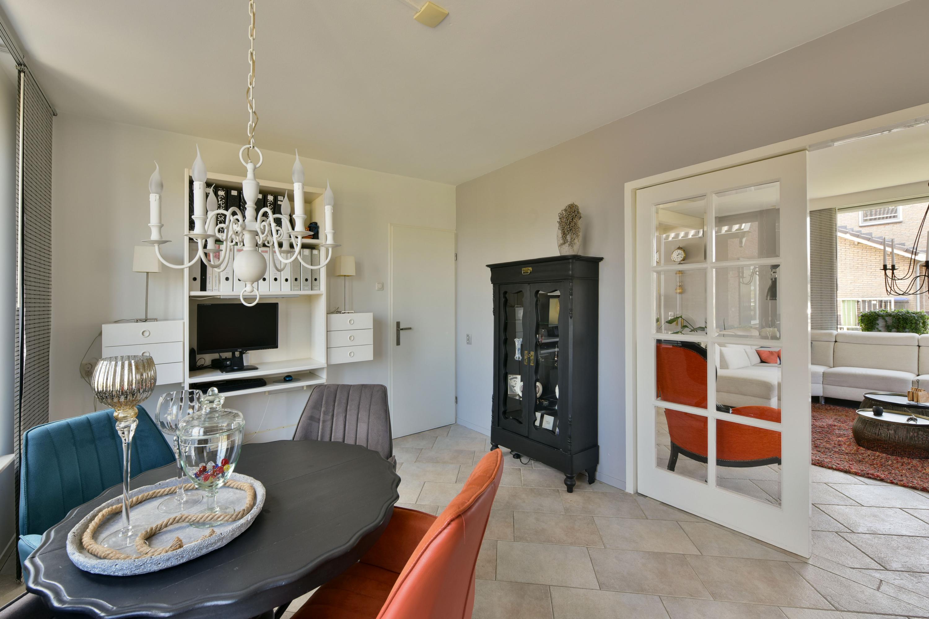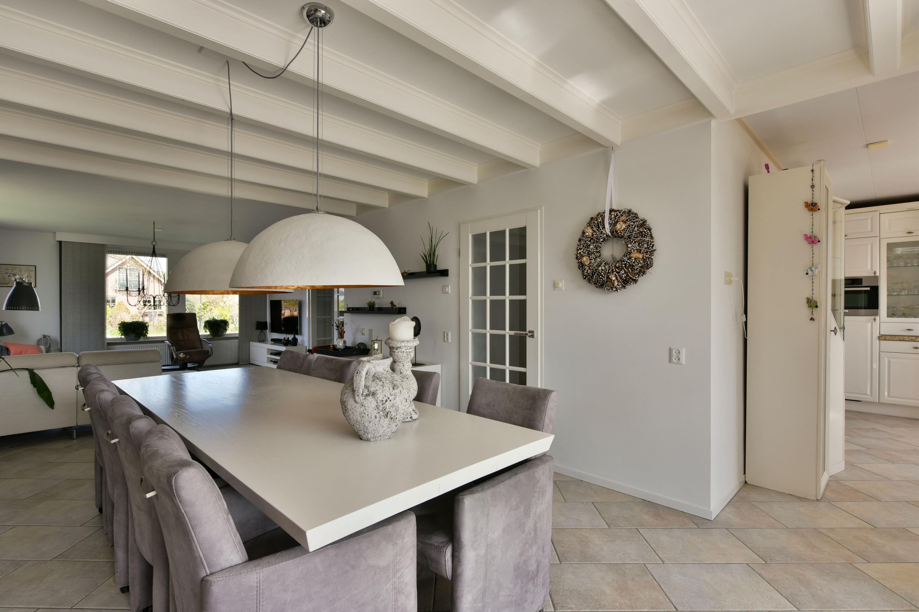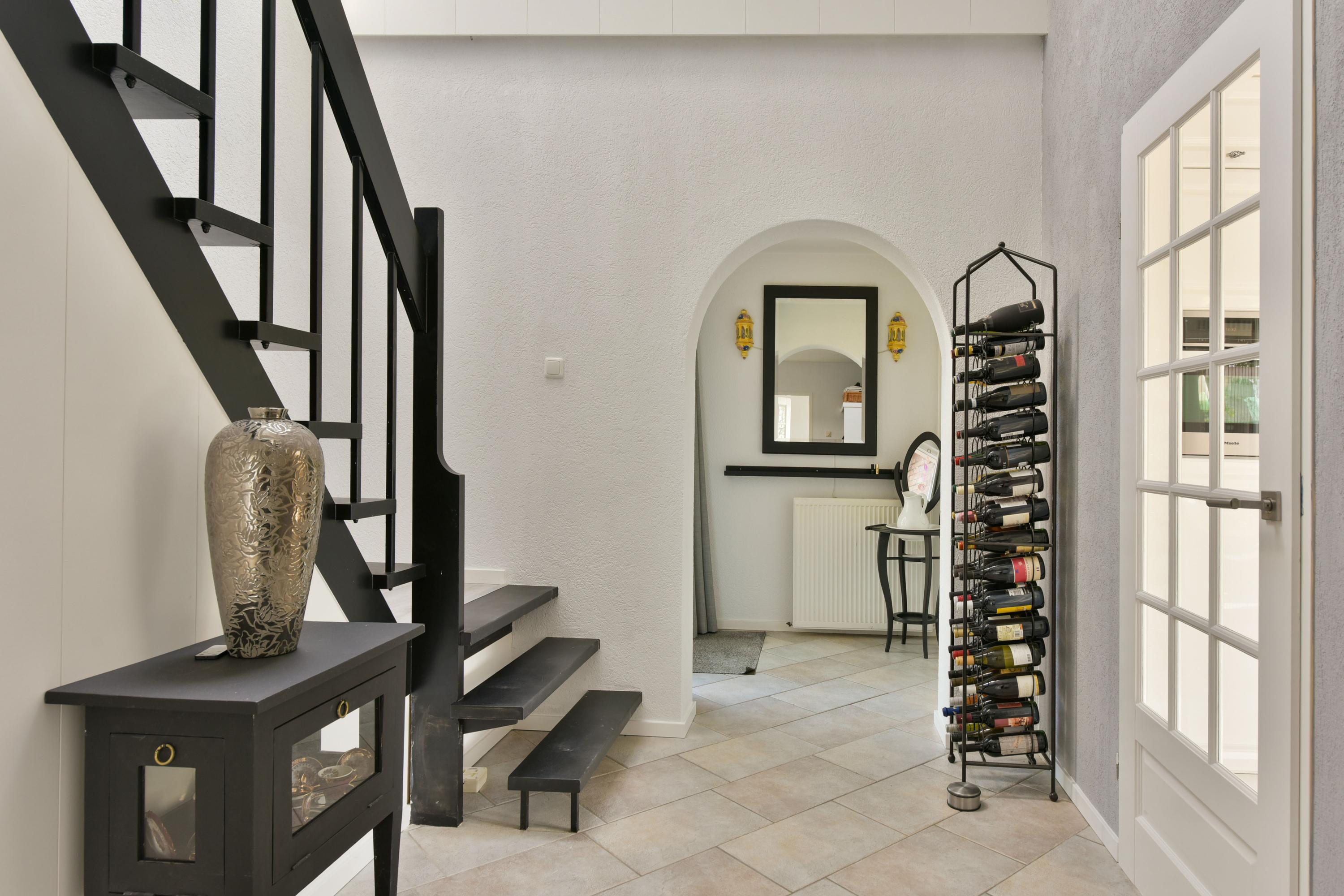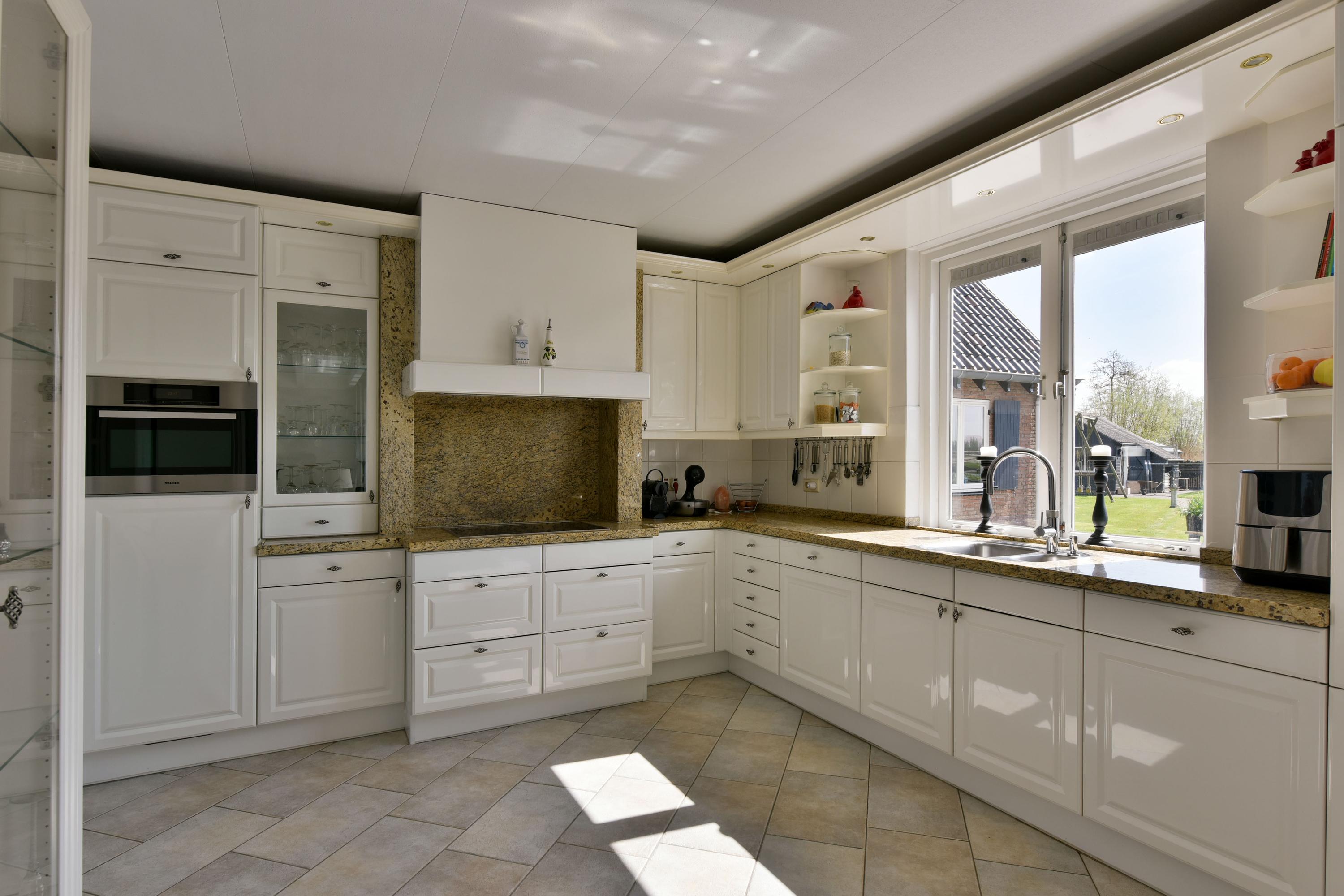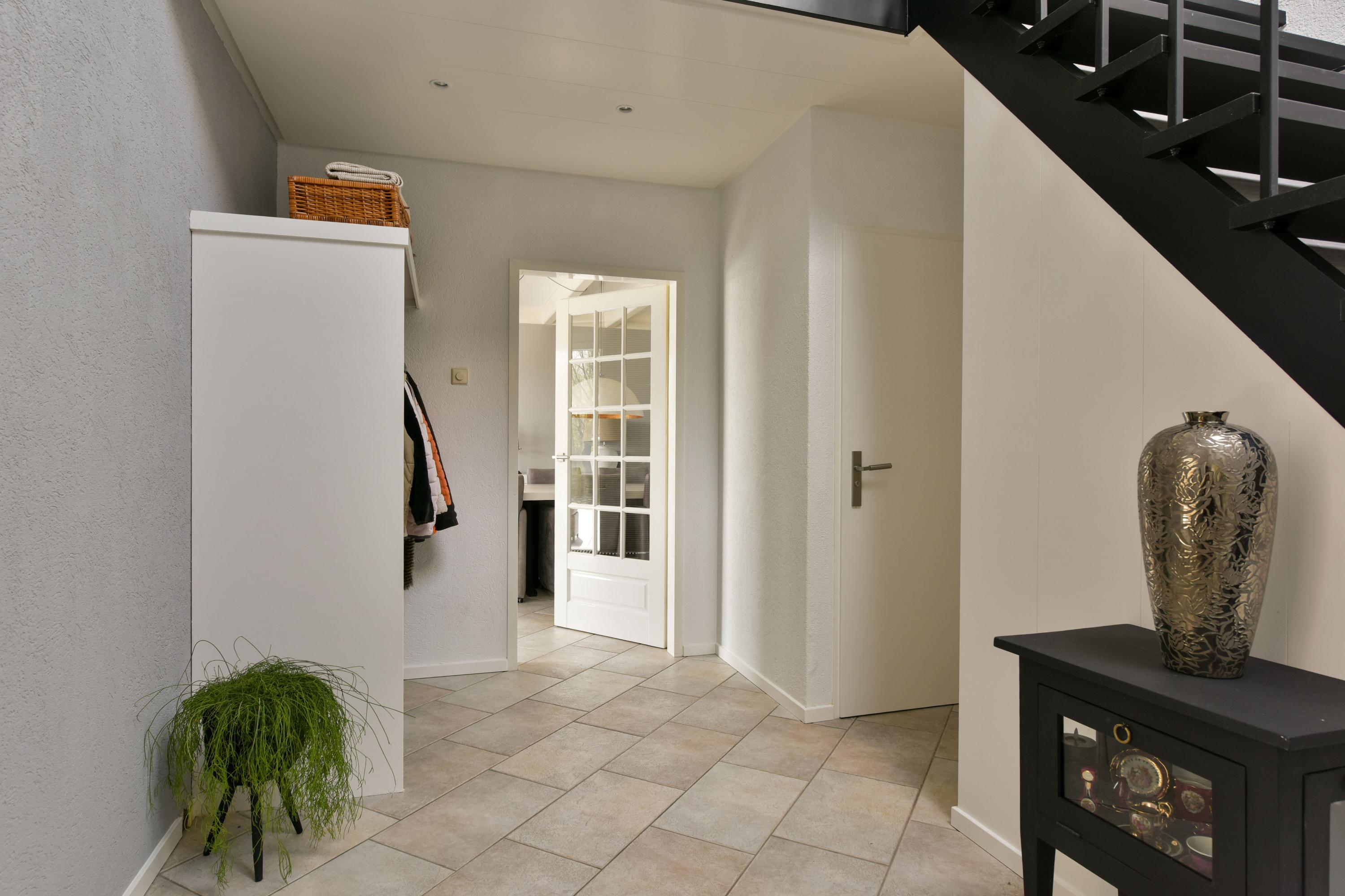 De tweede woning is net zo karaktervol, charmant en vol mogelijkheden. Ook hier word je verwelkomd door een ruime hal en een woonkamer met grote raampartijen, een sfeervolle gashaard en een warm houten laminaatvloer. De serre aan de achterzijde is een ware eyecatcher: licht, uitnodigend en met schuifpui naar de tuin. Een heerlijke plek om vier seizoenen lang te genieten van het uitzicht. De open keuken is praktisch en gezellig, met een inductiekookplaat, koelkast, vriezer, vaatwasser en combi-magnetronoven. Achterin de woning bevindt zich een ruime slaapkamer (nu in gebruik als inloopkast) met wastafel, naast een grote voorraadkast en het tweede toilet.
