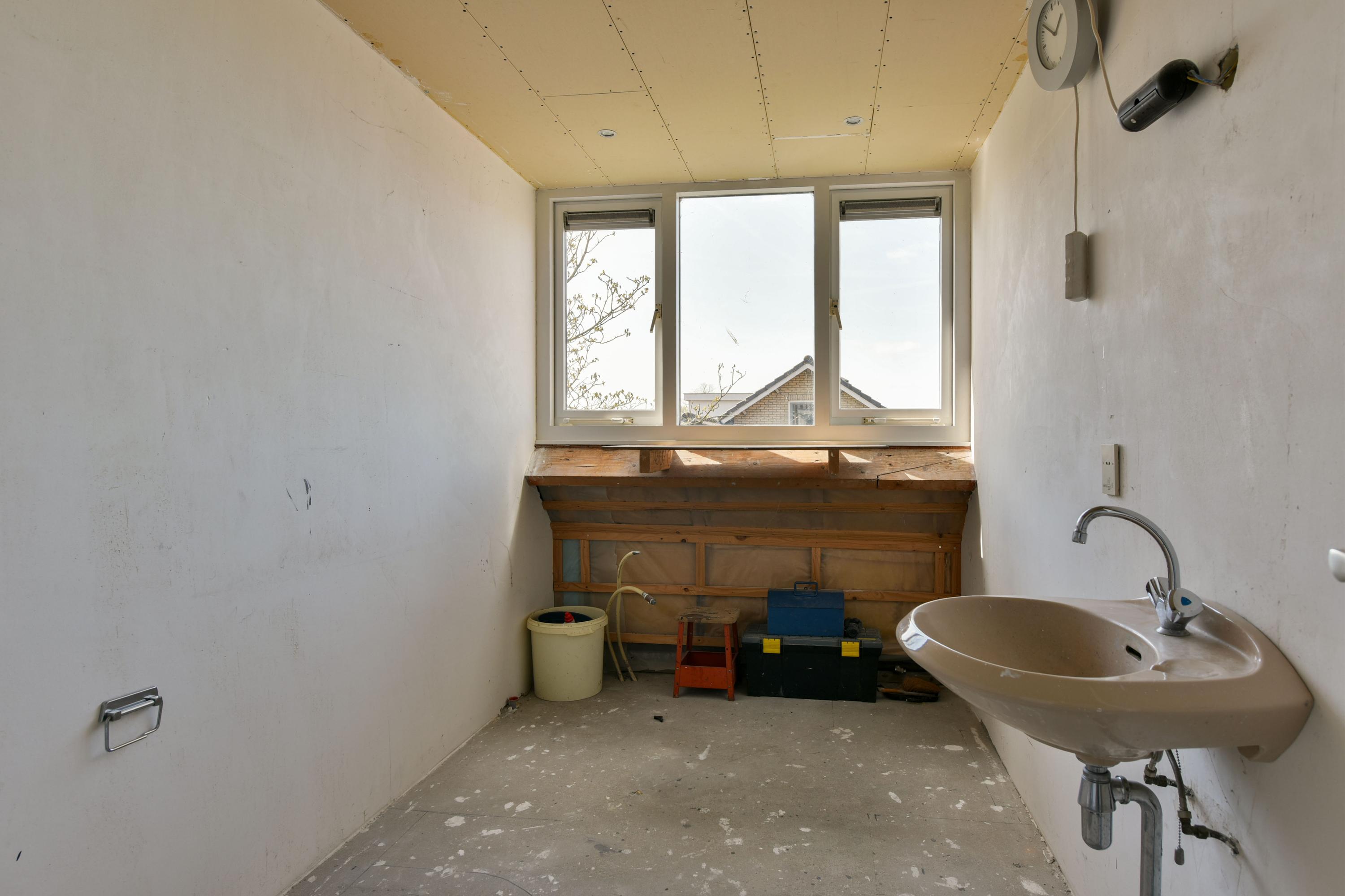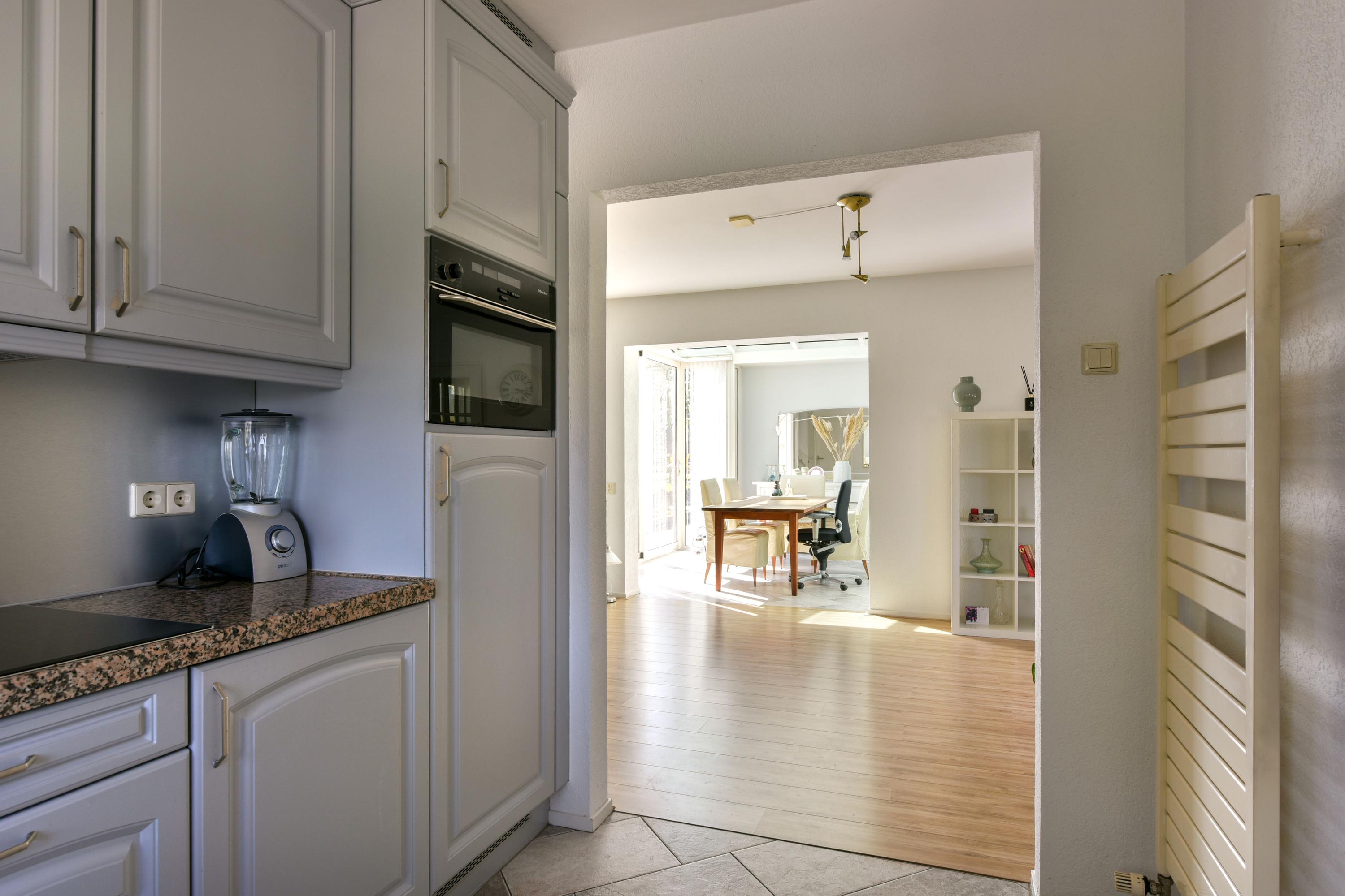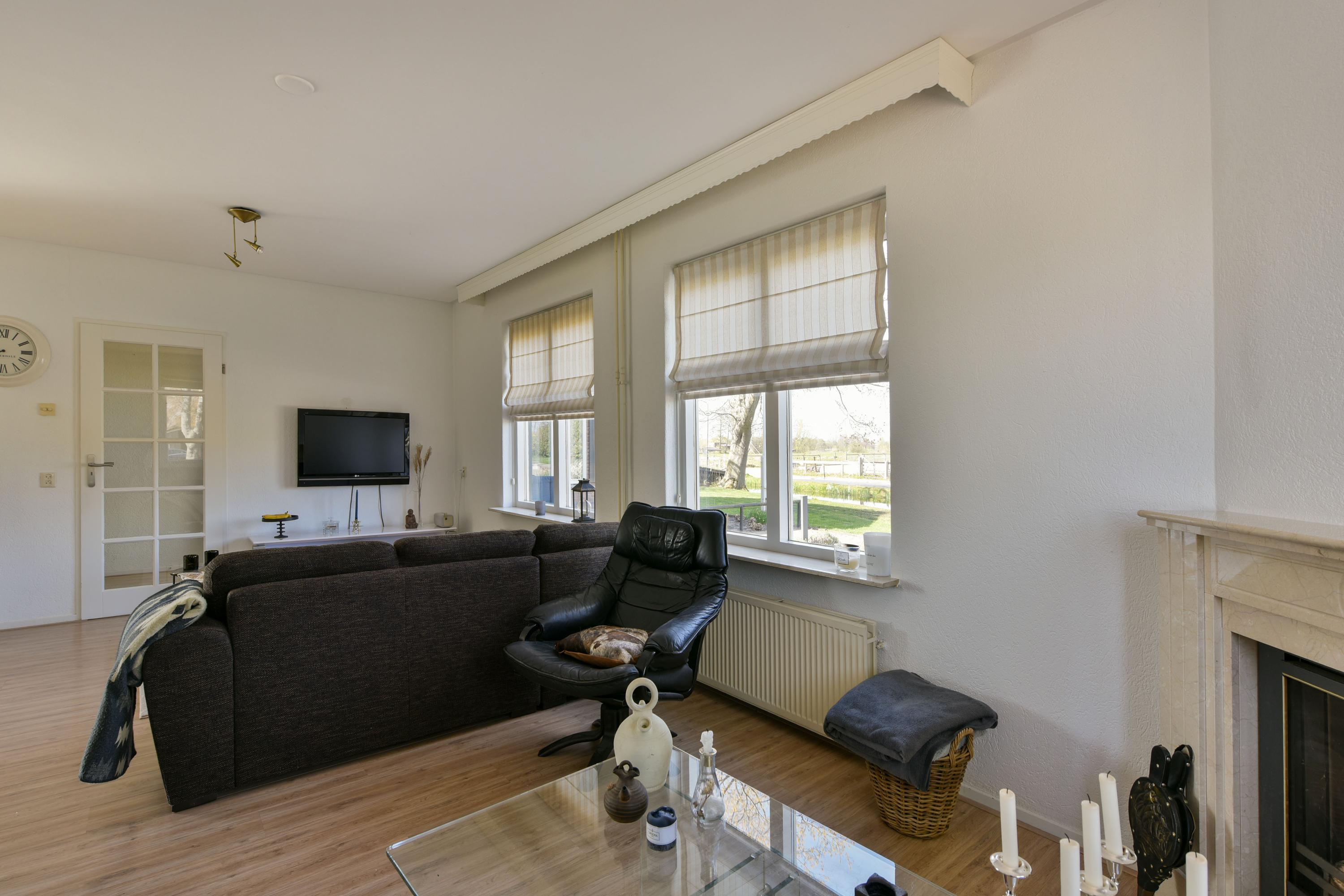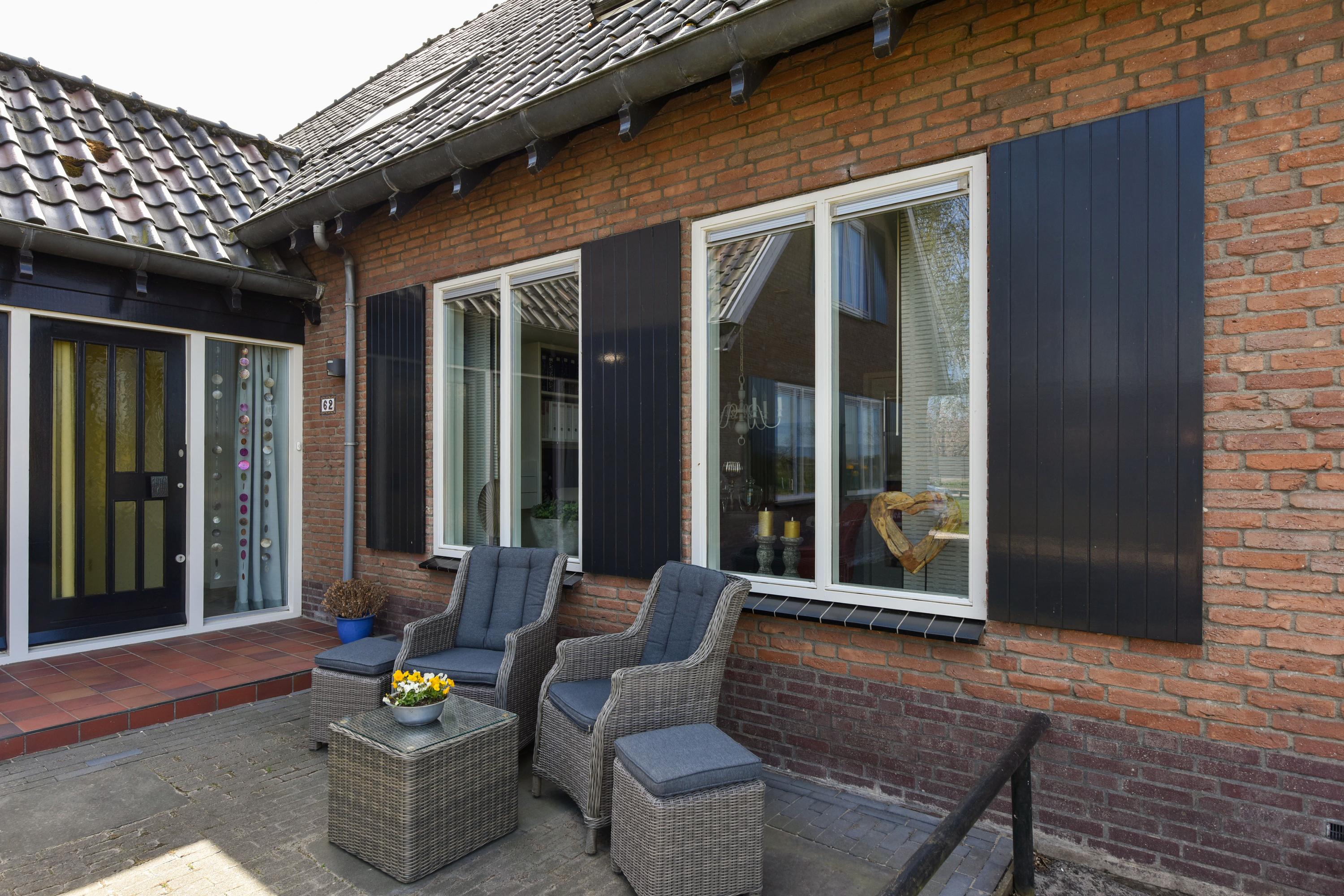 De tweede woning is net zo karaktervol, charmant en vol mogelijkheden. Ook hier word je verwelkomd door een ruime hal en een woonkamer met grote raampartijen, een sfeervolle gashaard en een warm houten laminaatvloer. De serre aan de achterzijde is een ware eyecatcher: licht, uitnodigend en met schuifpui naar de tuin. Een heerlijke plek om vier seizoenen lang te genieten van het uitzicht. De open keuken is praktisch en gezellig, met een inductiekookplaat, koelkast, vriezer, vaatwasser en combi-magnetronoven. Achterin de woning bevindt zich een ruime slaapkamer (nu in gebruik als inloopkast) met wastafel, naast een grote voorraadkast en het tweede toilet.