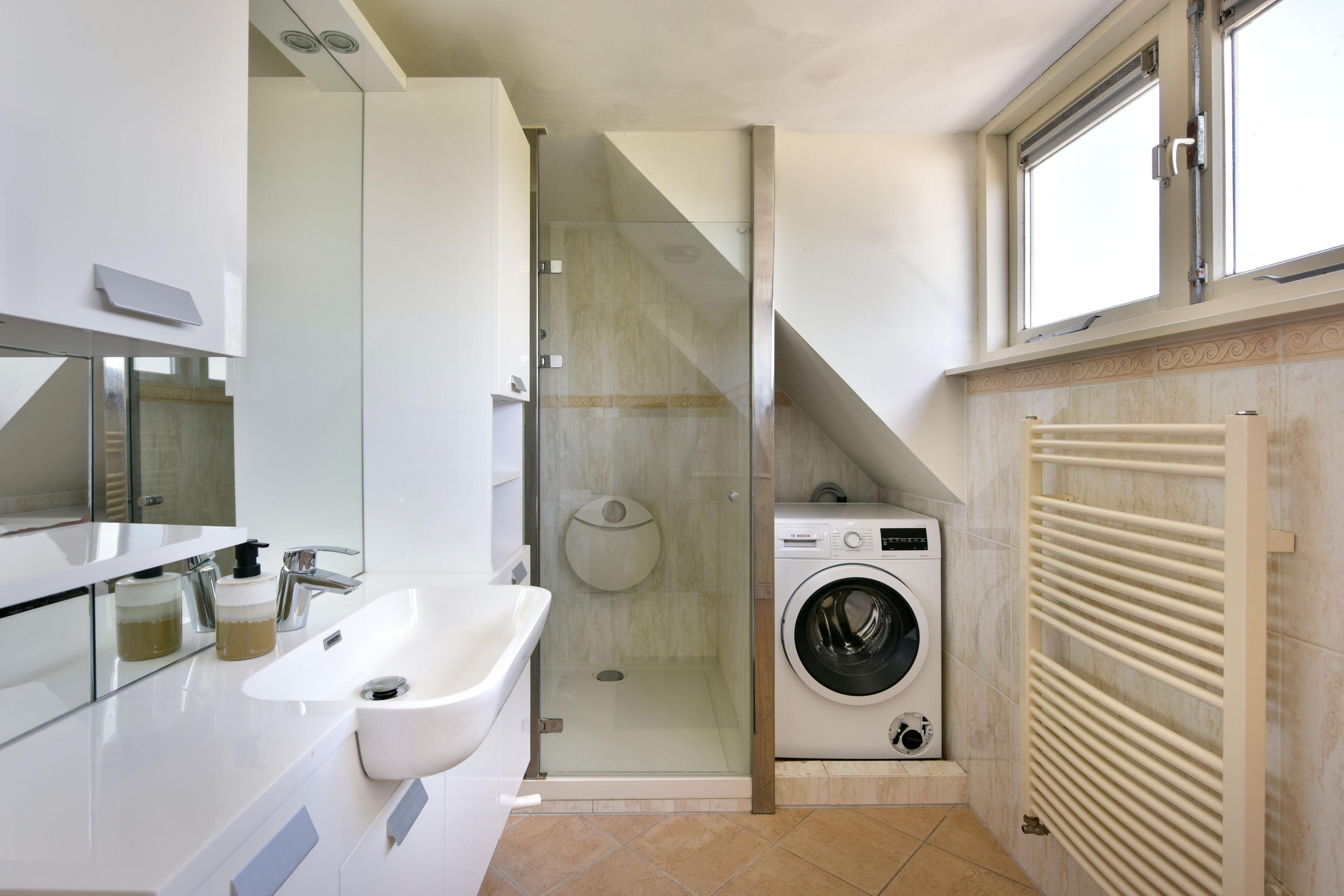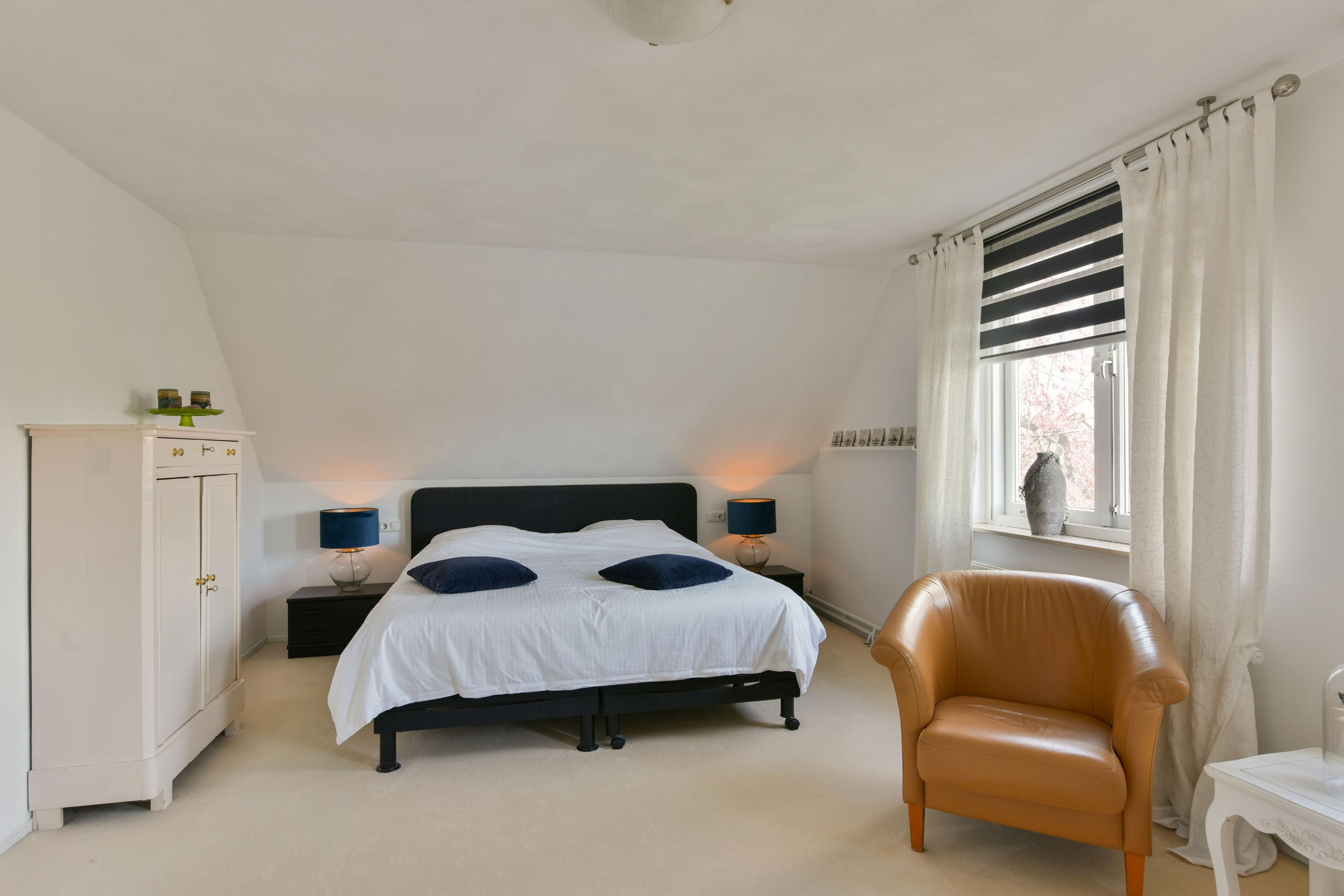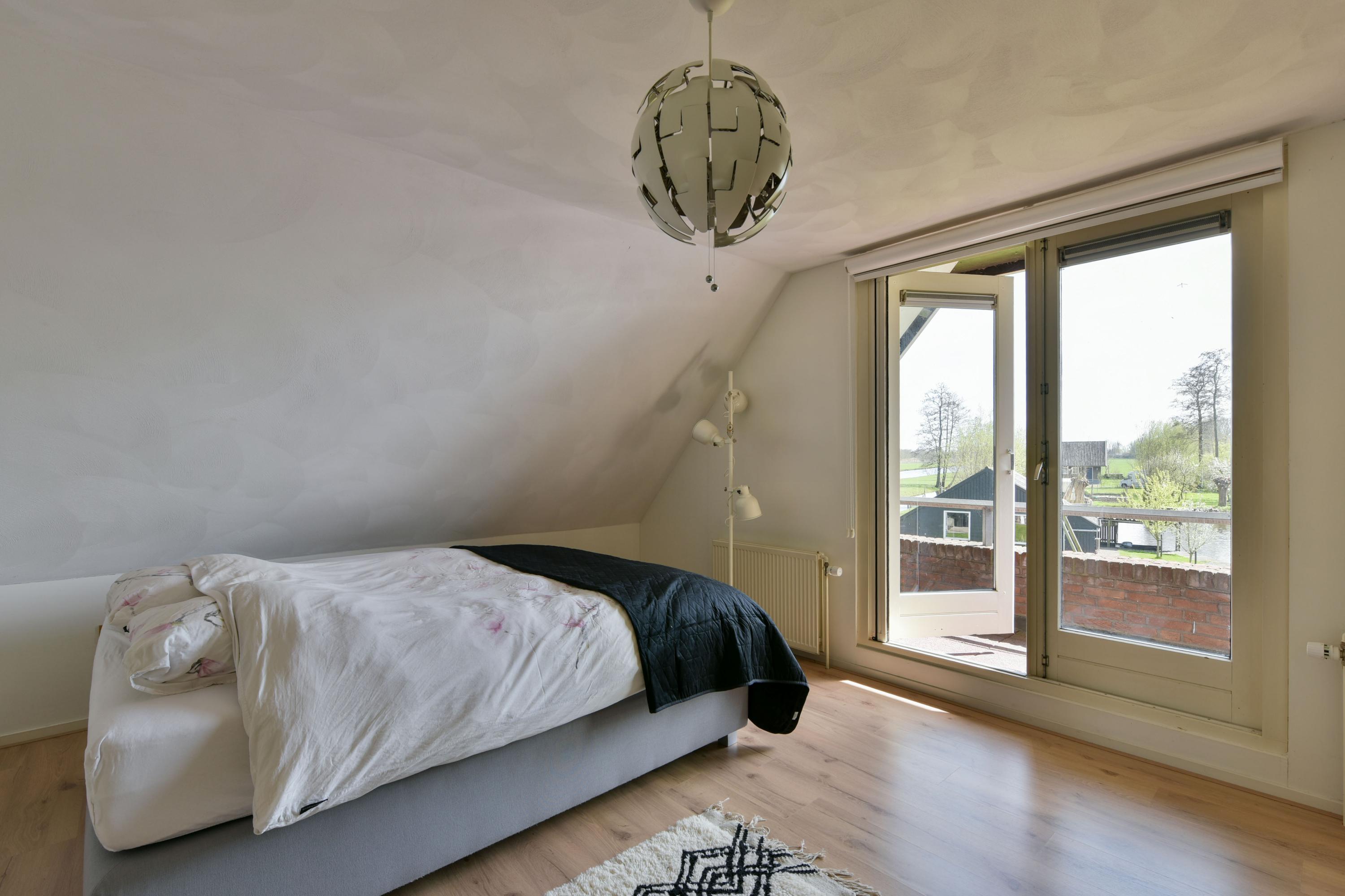 Via de trap in de woonkamer bereik je de bovenverdieping met nog twee royale slaapkamers en een badkamer. De slaapkamer aan de achterzijde heeft openslaande deuren naar een balkon met opnieuw dat magische uitzicht over water en landerijen. Hier wil je nooit meer weg. Ook deze woning beschikt over een praktische wasruimte met cv-ketel en de aansluitingen voor witgoed plus extra bergruimte. Ook deze woning beschikt over een bergvliering die met vlizotrap te bereiken is.