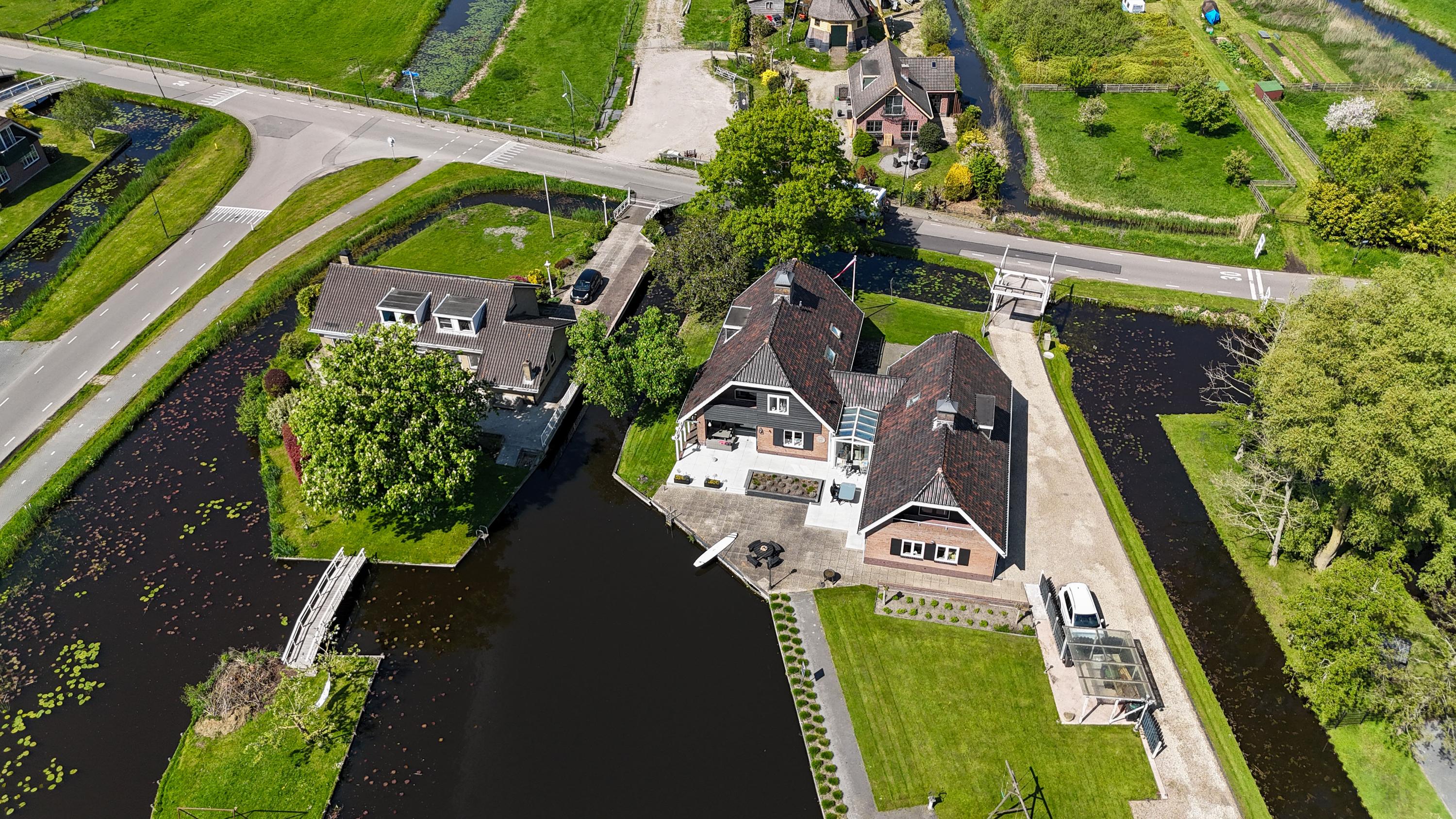 De tuin achter beide woningen is een groene oase met talloze mogelijkheden. Denk aan ontspannen op het terras, een verkoelende duik nemen, aanmeren met je sloep of genieten van een boek onder de overkapping aan het water. De tuin is voorzien van een grote schuur voor tuingereedschap, oude dierenverblijven (ideaal voor kippen, schapen of geiten) en zelfs een boothuis met takelinstallatie, klaar voor je sloep.