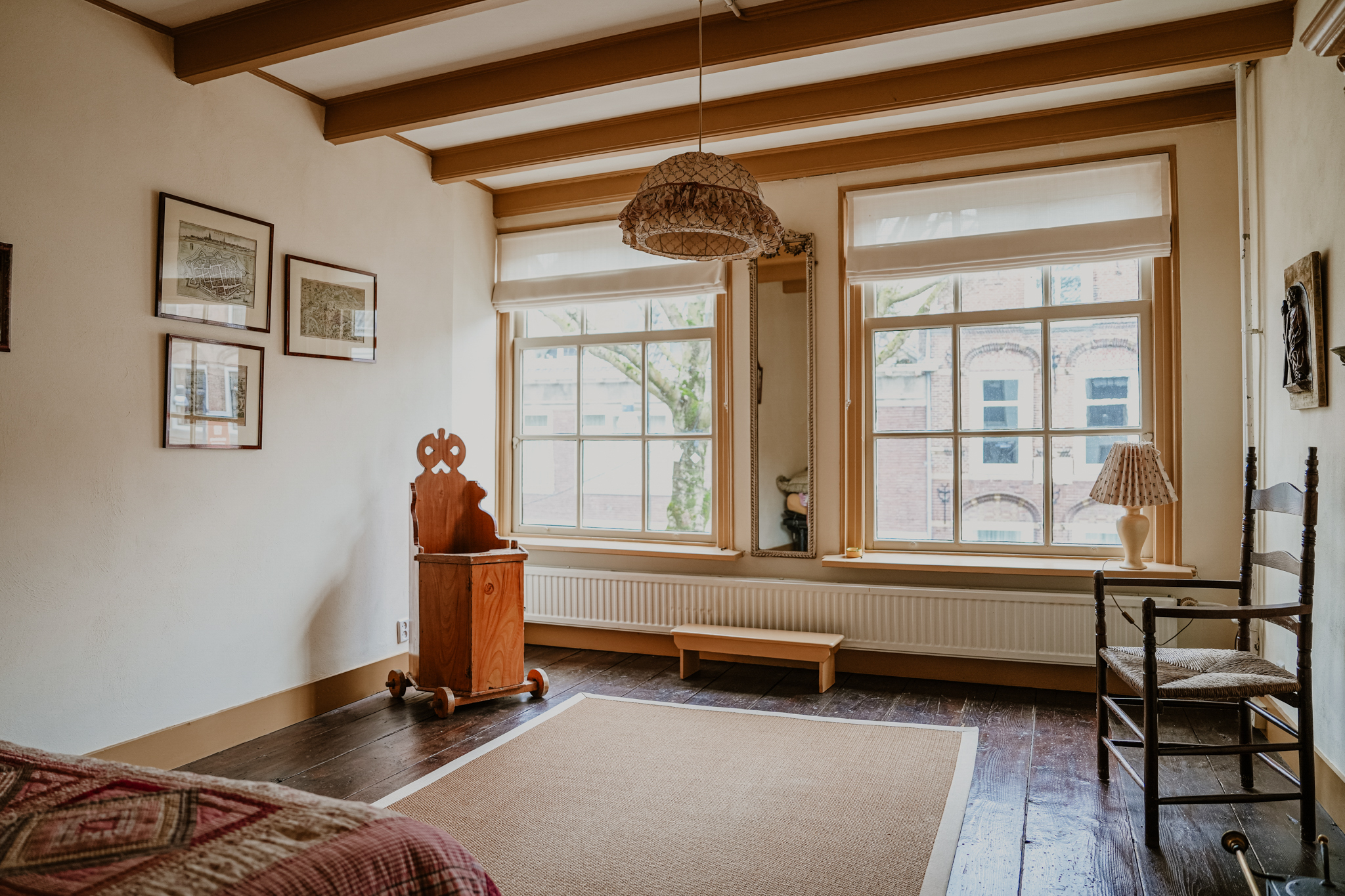 Op deze verdieping is de 16e-eeuwse sfeer voelbaar. Aan de voorzijde is een slaapkamer van 40m2 die in het verleden is gebruikt als woonkamer. Via drie 12-ruits schuifvensters is zicht op de brede Gasthuisstraat. Op de vloer liggen brede vloerdelen en er zijn twee vaste kasten. Aan de achterzijde is een nog imposantere slaapkamer. Er is een moer- en kinderbalkenplafond, een vloer met witgeschilderde brede vloerdelen en een kamerbrede kastenwand met fraaie paneeldeuren. Vanuit de twee 16-ruits vensters is zicht op de tuin.
